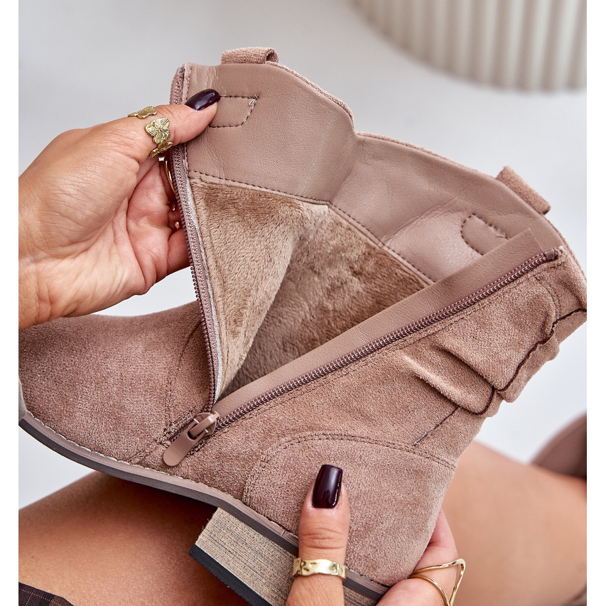 Detalii: Botine izolate cu volane pe toc mic, Bej Elletinnia
