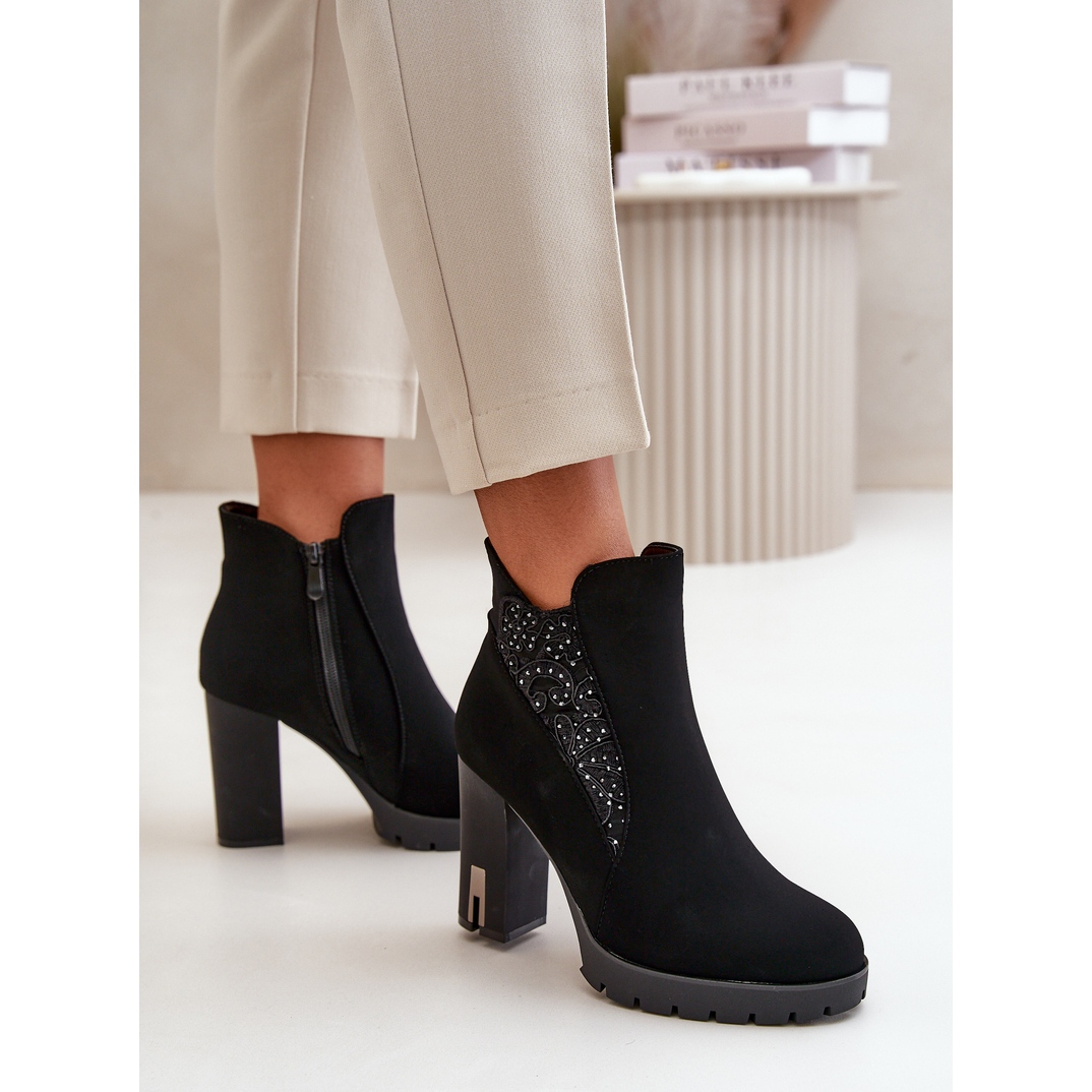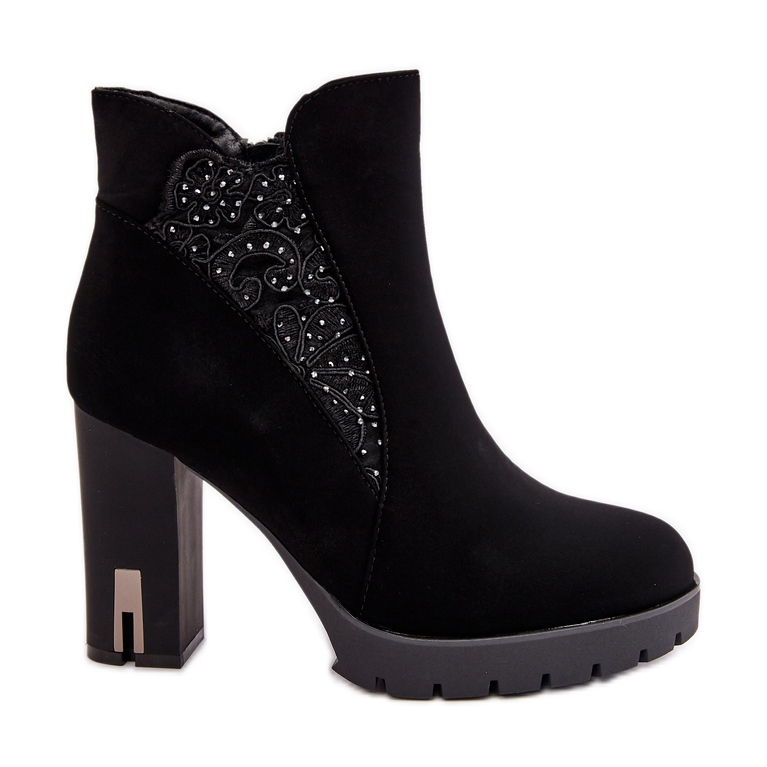 Detalii: PS1 Botine izolate de dama pe toc inalt cu broderie, Black Verissae negru