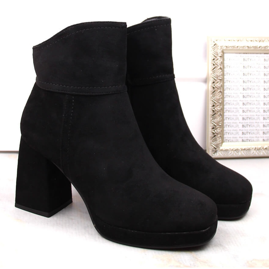 Detalii: M. DASZYŃSKI Botine izolate din piele intoarsa neagra, cu toc inalt si platforma, M.Daszyński MR2288-4 negru