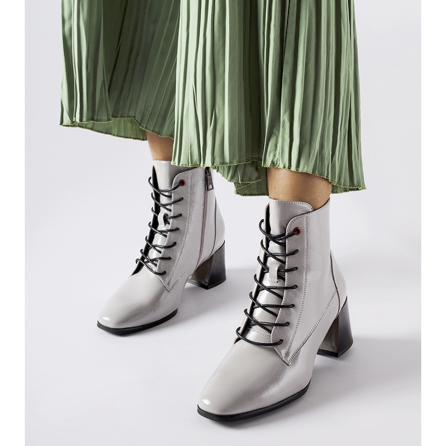 Confectionate din piele ecologica de inalta calitate, cizmele incanta cu o culoare gri subtila, pe care producatorul o numeste pur si simplu „GRAY”. Finisajul lăcuit le conferă un caracter unic, iar degetele rotunde curate și drepte, marcate corespunzător, oferă spațiu și confort picioarelor în timpul utilizării. Un avantaj suplimentar este izolația caldă, care garantează confortul termic al picioarelor chiar și în zilele geroase.
