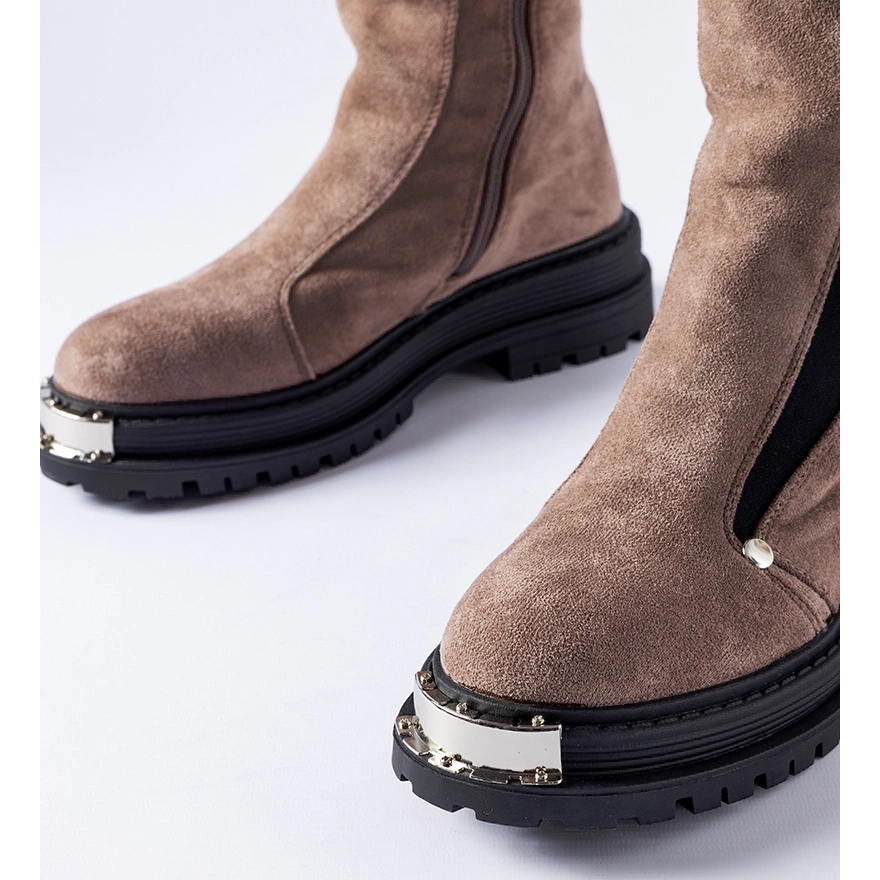 Cizme izolate maro cu nasul decorativ Bologna - Model NC1306