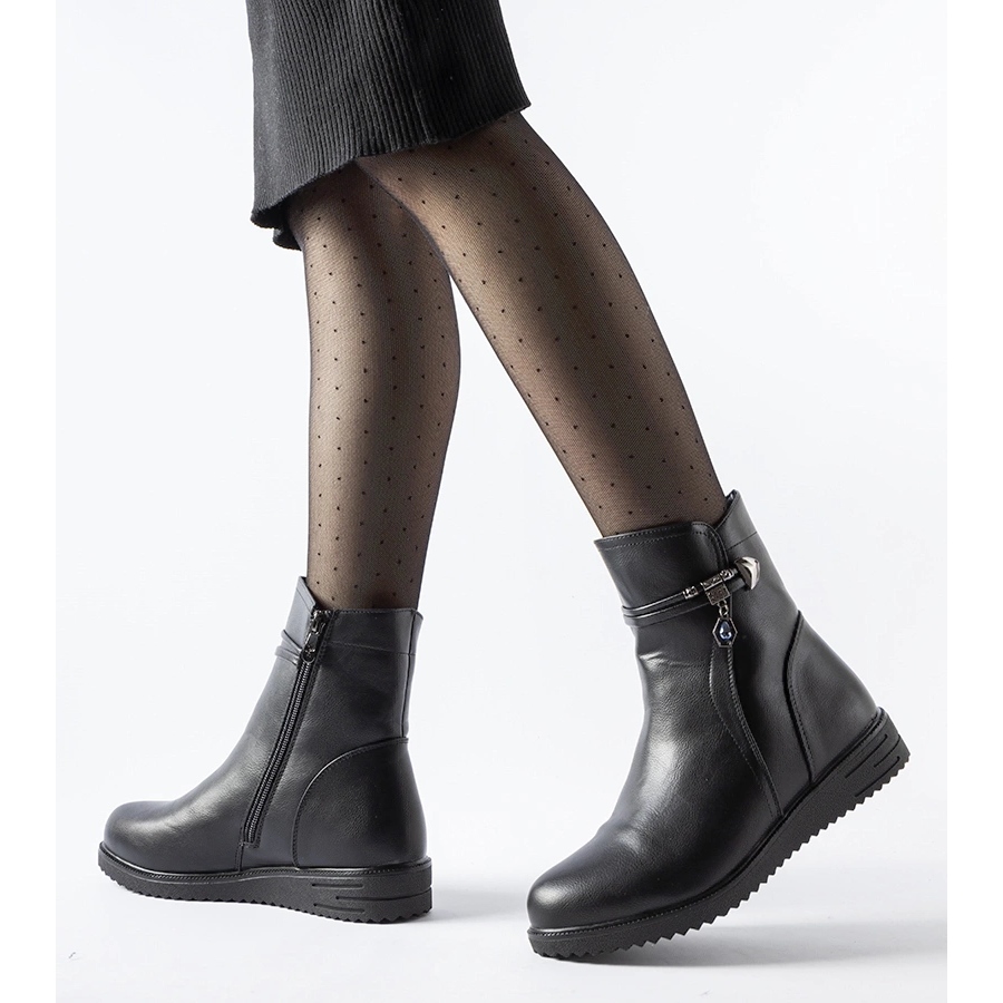 Detalii: Botine izolate negre cu pandantiv Nola decorativ negru