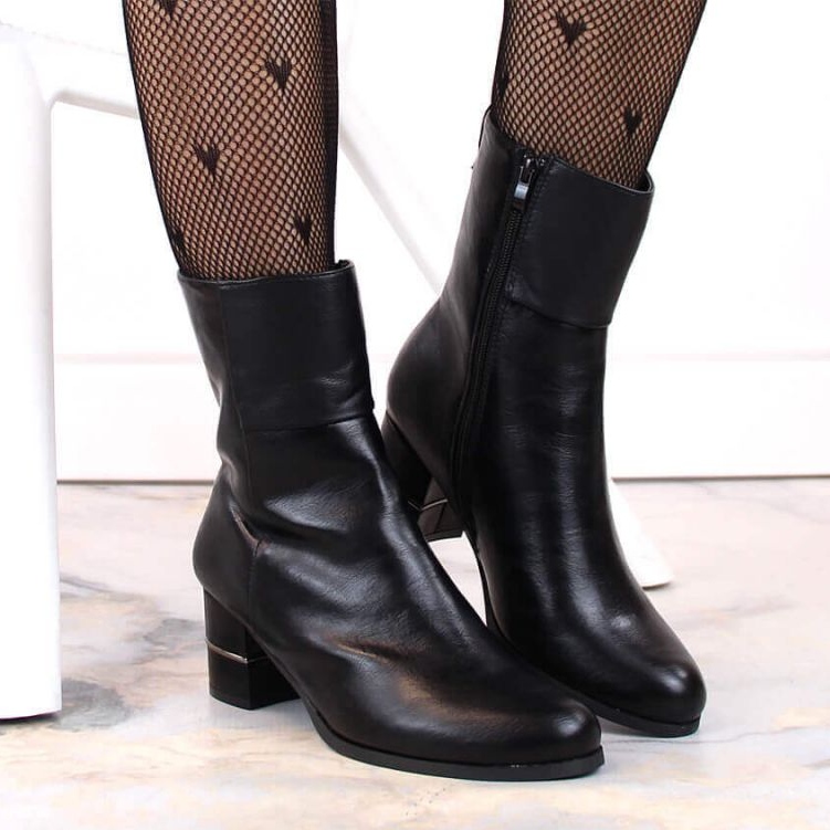 Detalii: Botine izolate negre Jezzi W JEZ421 cu toc decorativ negru