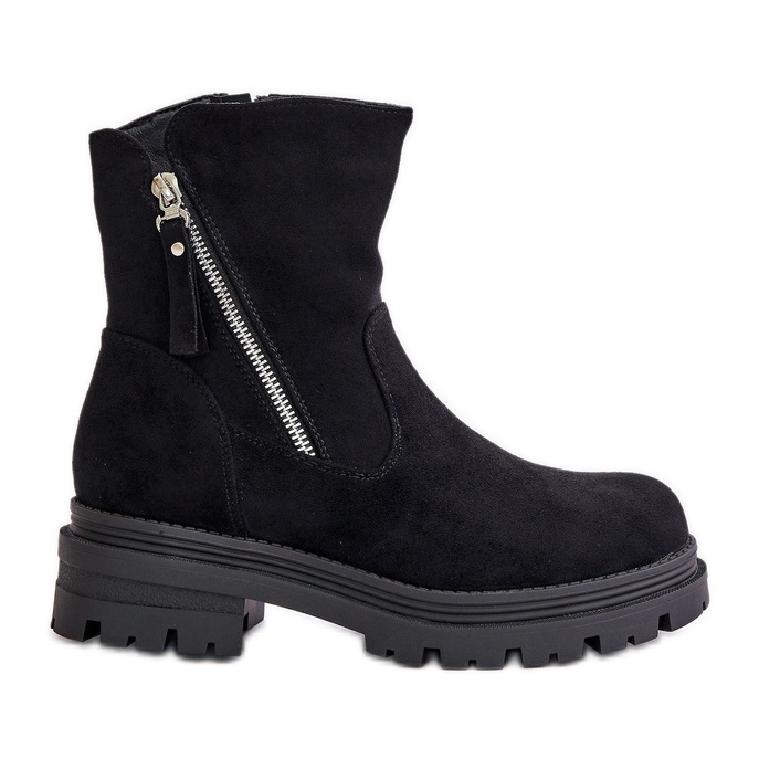 Detalii: Botine izolate pe toc plat din piele intoarsa ecologica, Black Reloma negru