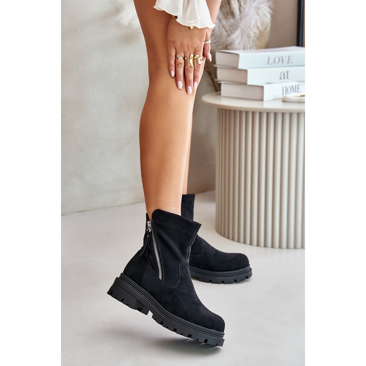 Cizmele sunt fixate cu un fermoar, ceea ce face mai ușor să se pună și să decoleze, iar culoarea neagră le face ușor adaptate la diferite stiluri. Datorită designului atent, înălțimea superioară este de 15 cm și lățimea de 12,5 cm, ceea ce îi face să se lipească de gleznă.