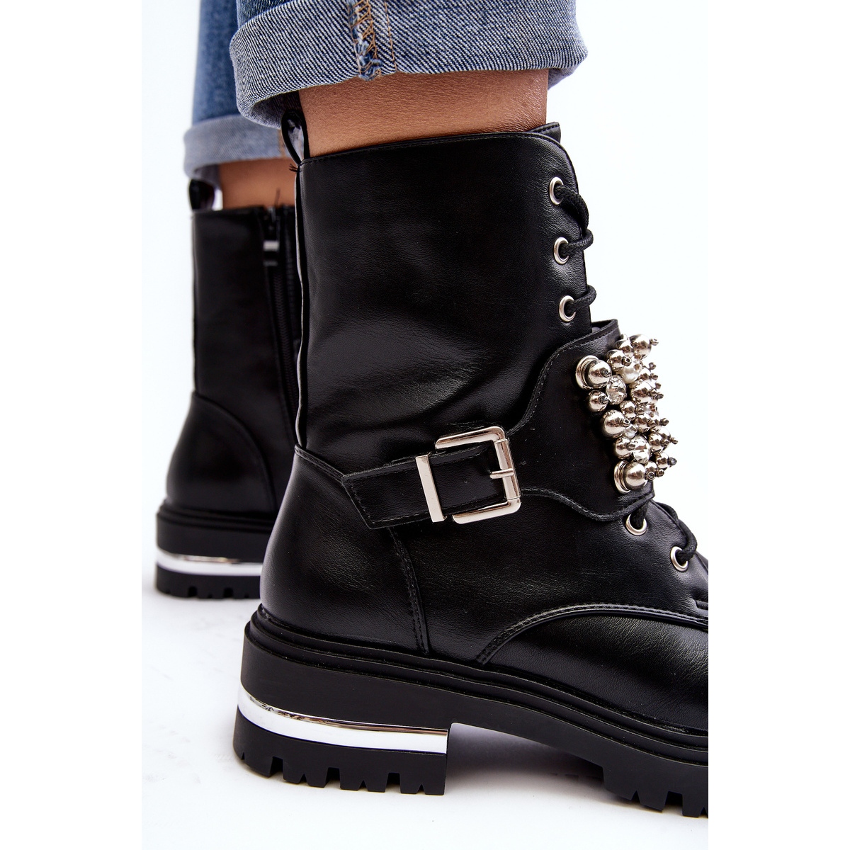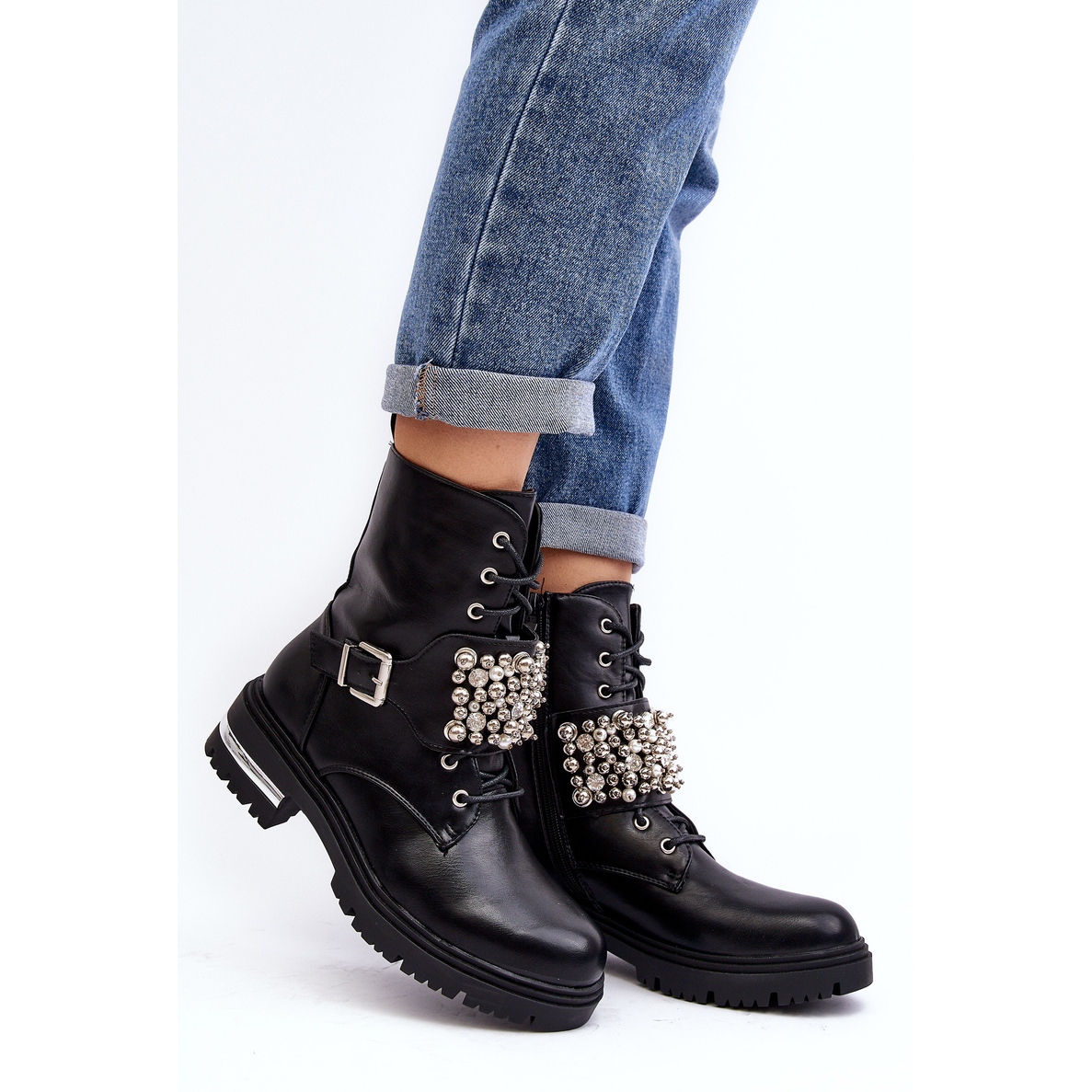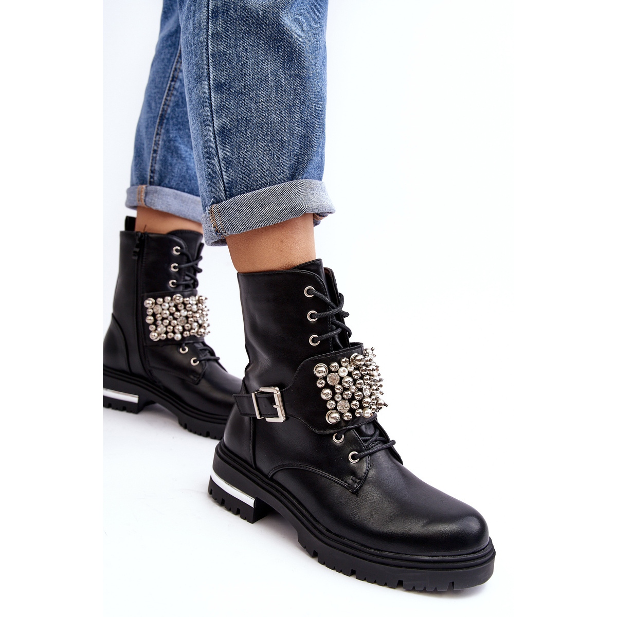 Detalii: Botine izolate pentru femei Worker decorate Lennen negru