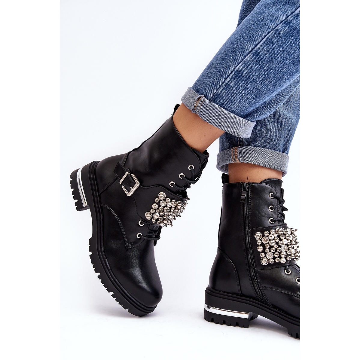 Important este că pantofii sunt fără model, ceea ce îi face ușor de asortat cu multe stiluri, de la casual la ceva mai elegant. Datorită acestor caracteristici, cizmele de muncitor izolate pentru damă decorate negru sunt de facto un must-have în orice garderobă la modă de toamnă.
