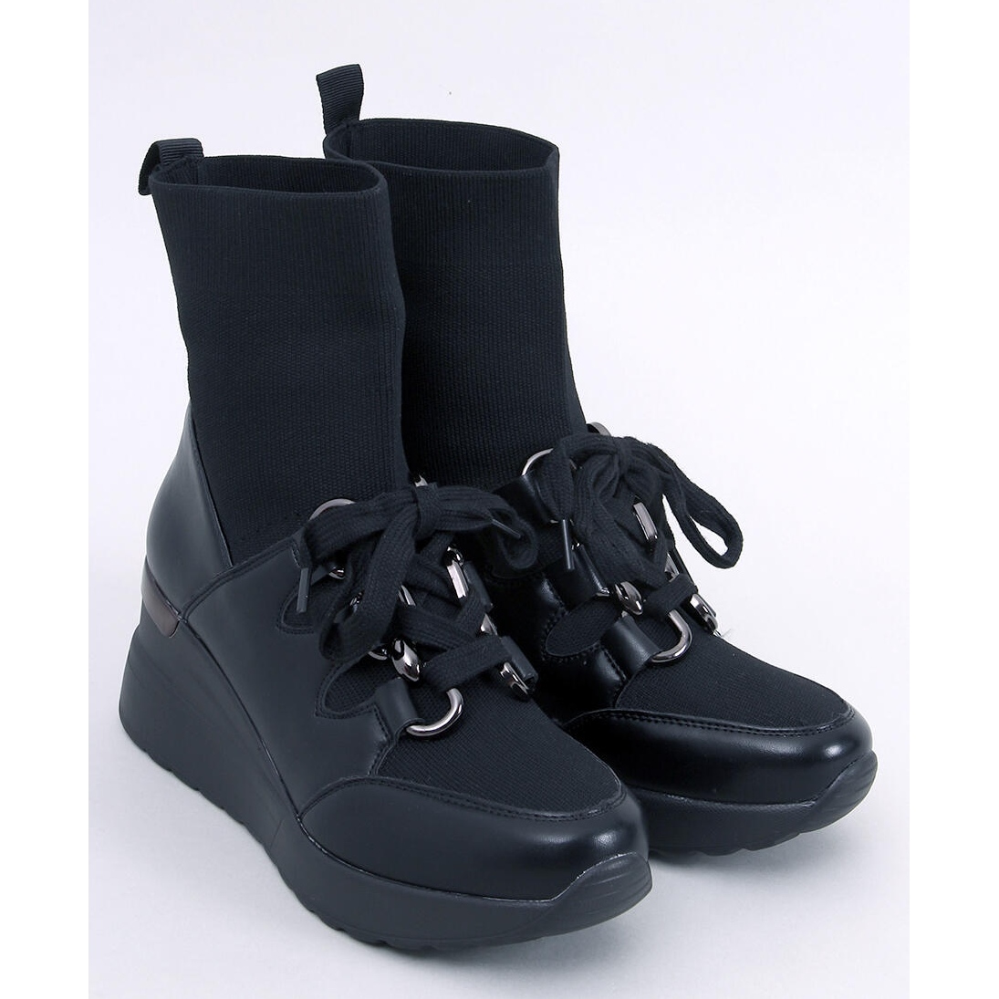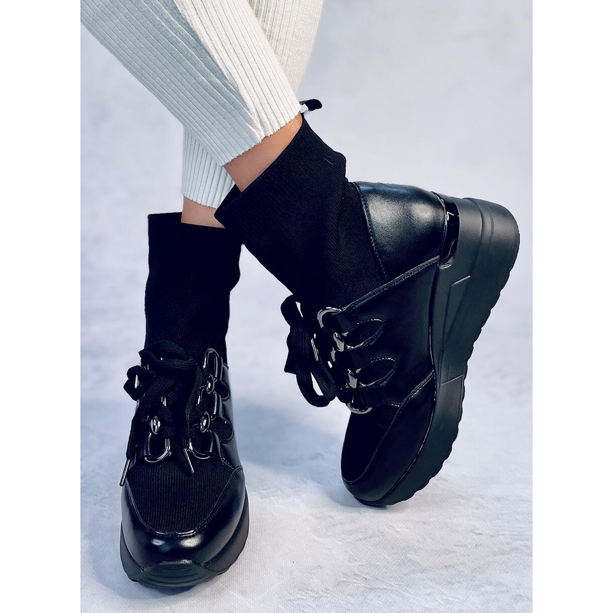 Sunt realizate din material textil si piele ecologica, ceea ce le mareste durabilitatea si le face mai prietenoase cu mediul. Sunt echipate cu un vârf rotund și o pană de 6,5 cm, care adaugă eleganță și rafinament. Caracteristica lor principală este căptușeala șosetei care se adaptează perfect piciorului, asigurând confort în timpul purtării.