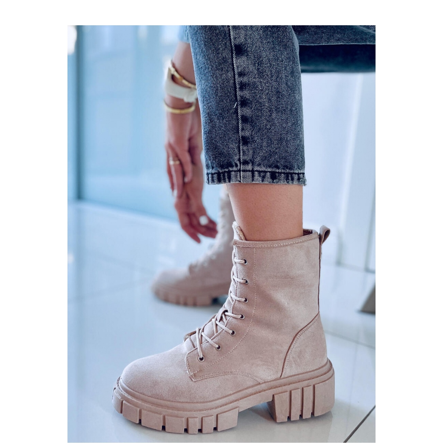 Detalii: Botine Kelis Beige cu siret - Inello bej