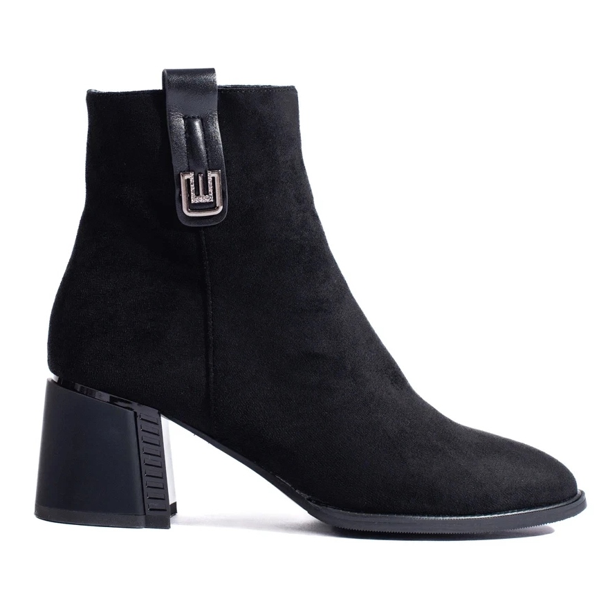 Detalii: Botine negre clasice Shelovet din piele intoarsa cu toc inalt negru