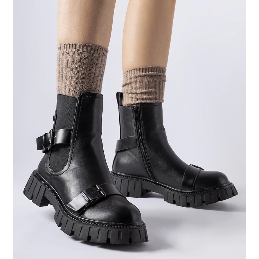 ** D/CEO Cizme negre pe o talpă masivă de fontarină **