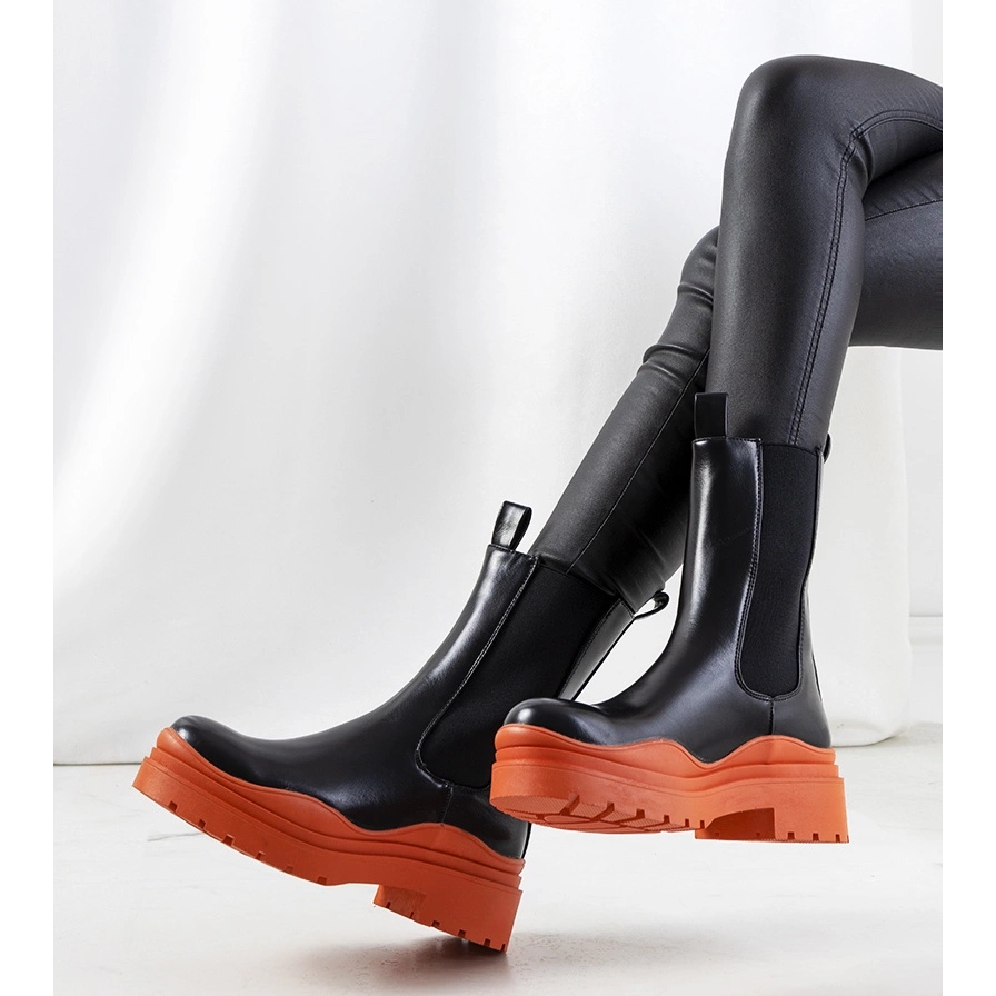 Cizme negre Nester cu o talpă portocalie-un accent curajos în toamnă și garderoba de iarnă