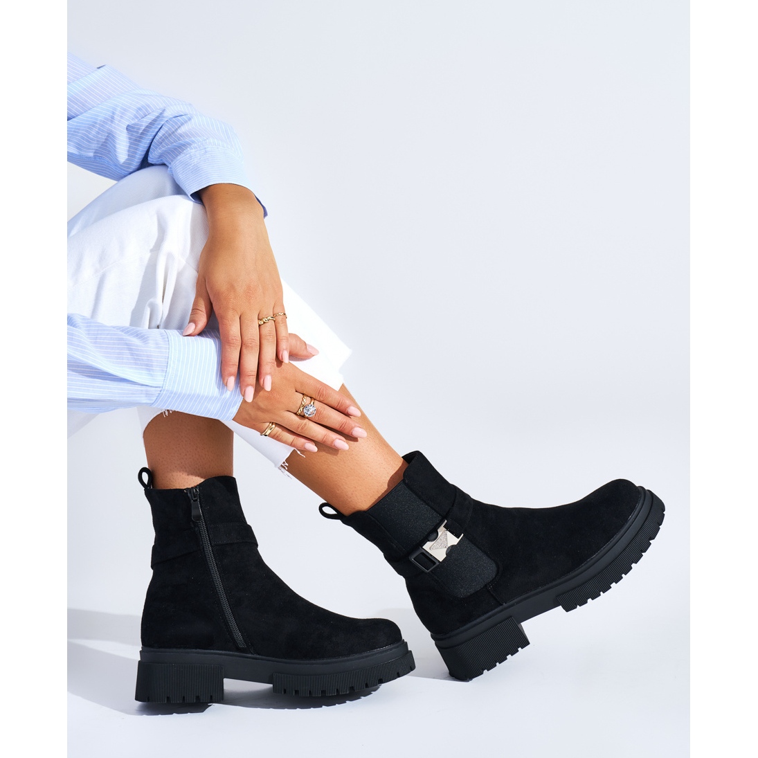 Botinele negre de damă sunt o propunere ideală pentru femeile care apreciază eleganța combinată cu confortul de zi cu zi. Confectionate din piele intoarsa ecologica, arata elegant si modern, iar culoarea lor universala neagra le face sa se potriveasca perfect cu o varietate de stiluri.