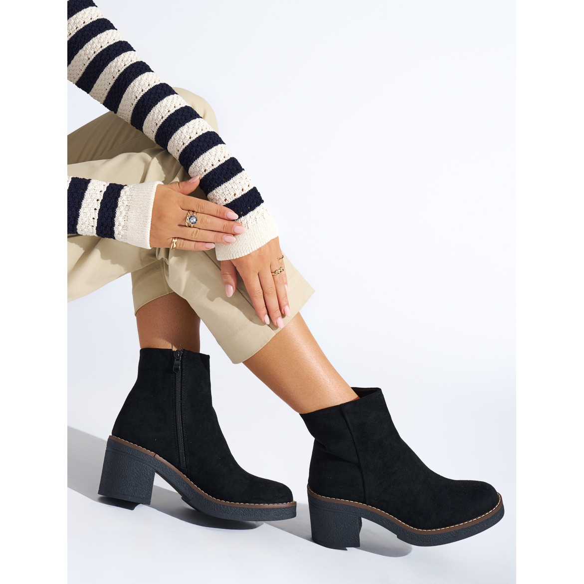 Culoarea neagră și aspectul minimalist, absolut fac ca aceste cizme universale să se potrivească cu multe stiluri diferite. Electul de fixare cu fermoar face mai ușor să se pună și să îndepărteze pantofii. Un avantaj suplimentar este un călcâie încorporat, rigidizat, care adaugă stabilitate.