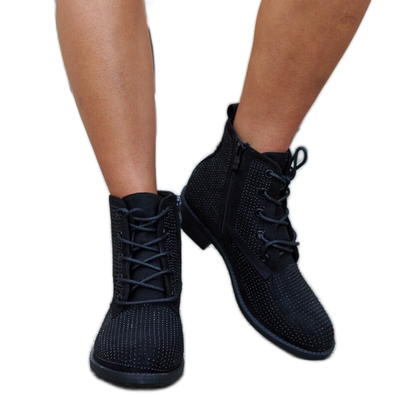 Detalii: Botine negre decorate cu zirconii Melisurgo negru