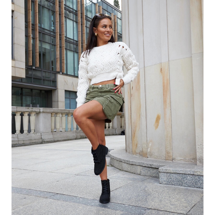 Cizme elegante și confortabile care vor adăuga splendoare la fiecare stilizare de iarnă. Nasul rotund le oferă subtilitate, iar partea superioară înaltă care ajunge la gleznă (15 cm) oferă protecție și confort în zilele mai răcoroase. Rinonele decorative atrag atenția, subliniind natura unică a încălțămintei - ideale atât pentru seturi casual, cât și pentru ieșiri de seară.