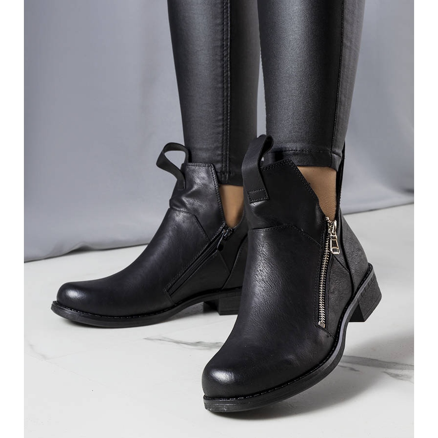 Partea superioară a cizmelor este confecționată din piele ecologică de înaltă calitate, ceea ce le face nu numai estetice, ci și ecologice. Decorațiunile sub formă de decupaje și fermoare pe ambele părți le conferă un caracter modern. Interiorul cizmelor este izolat cu blana moale, ceea ce le face confortabil de purtat chiar si in zilele mai reci.