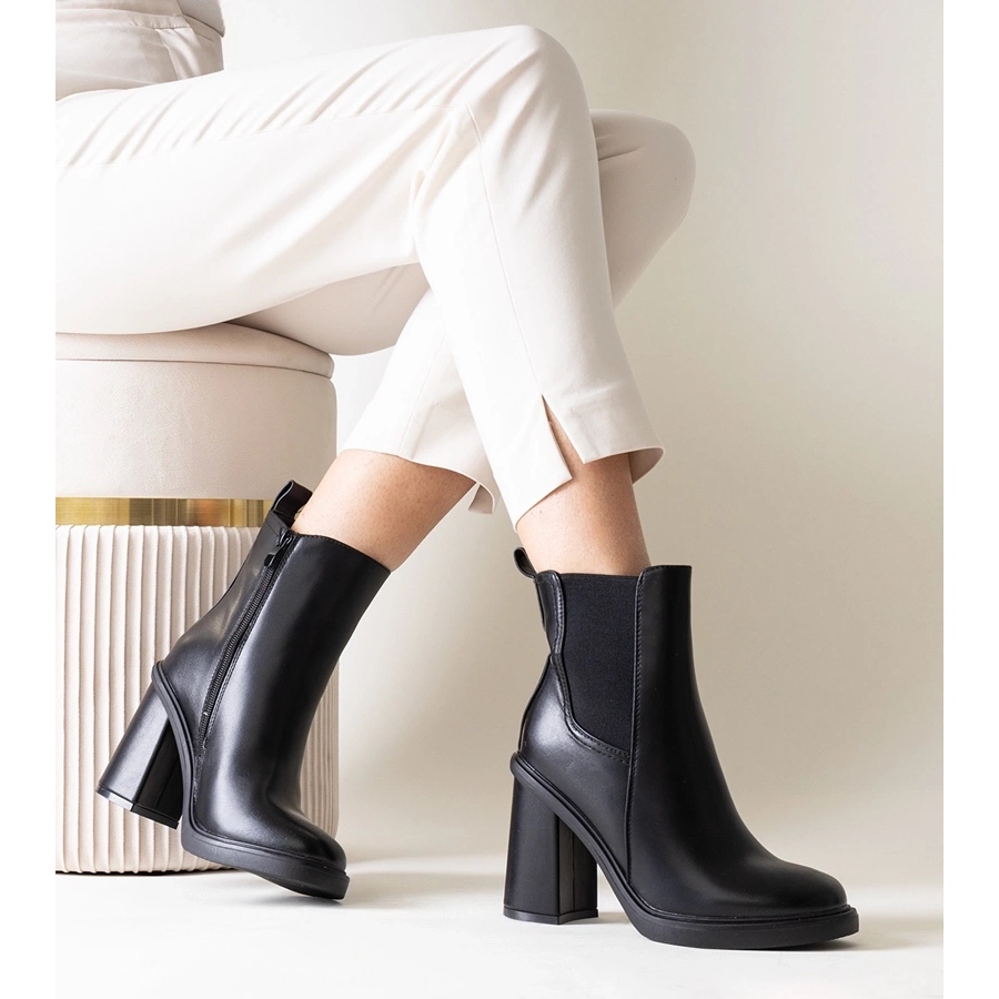 Înălțimea călcâiului de 9 cm înseamnă că cizmele nu numai că prelungesc frumos picioarele, dar sunt, de asemenea, confortabile de purtat datorită postării stabile. Fabricate din piele ecologică de înaltă calitate, acestea garantează durabilitatea și ușurința de îngrijire. Încălzirea interiorului va avea grijă de confortul termic chiar și în zilele mai răcoroase, iar nasul rotund le oferă universalitate.