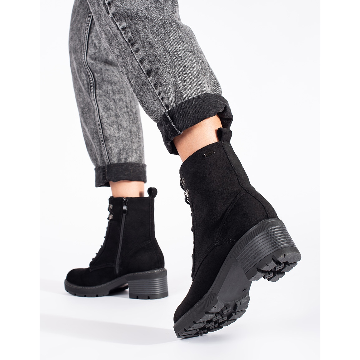Detalii: Botine negre din piele intoarsa cu cravate negru