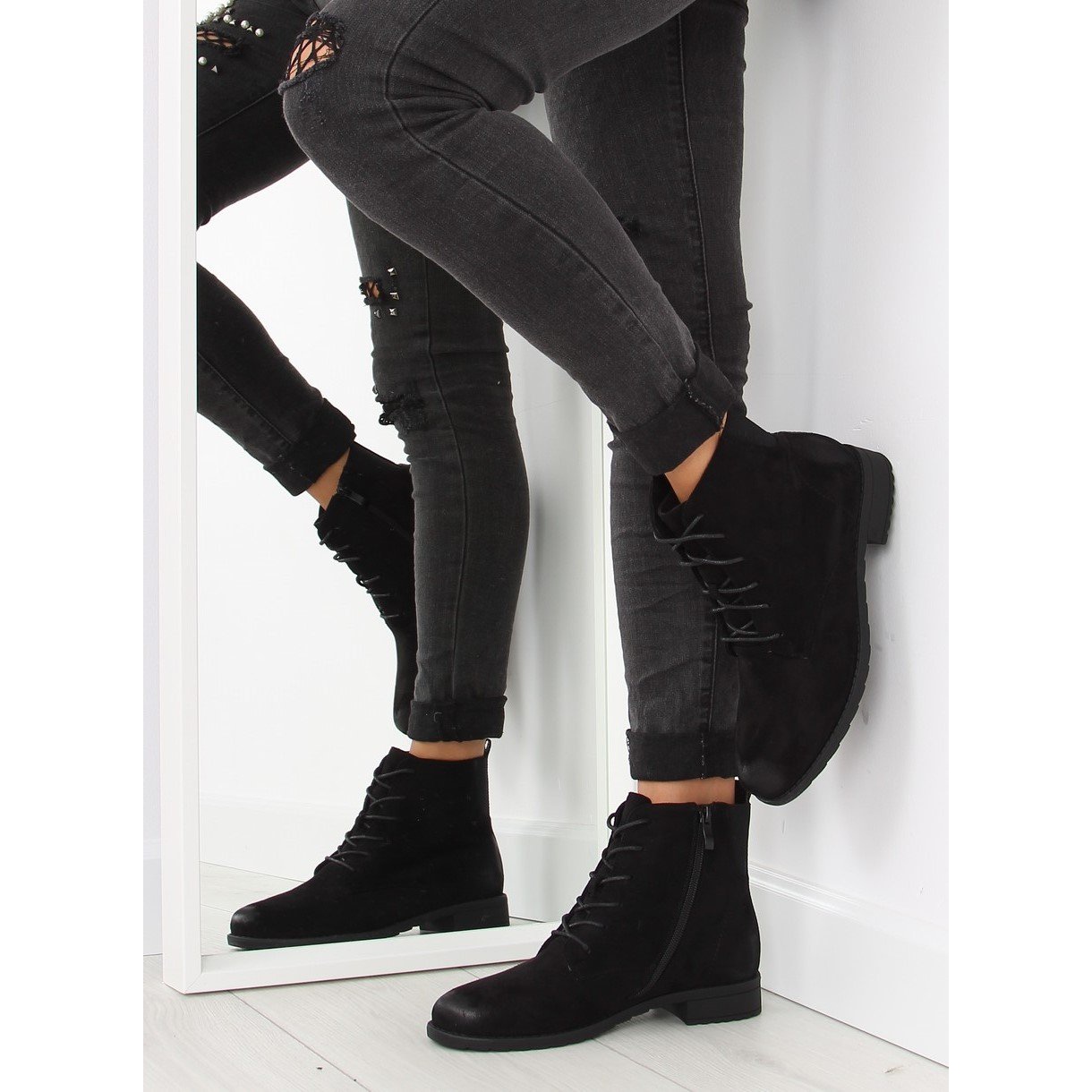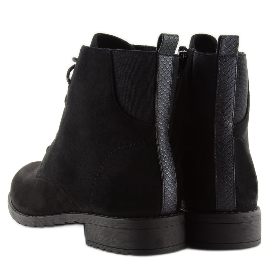 Detalii: Botine negre din piele intoarsa cu siret negru