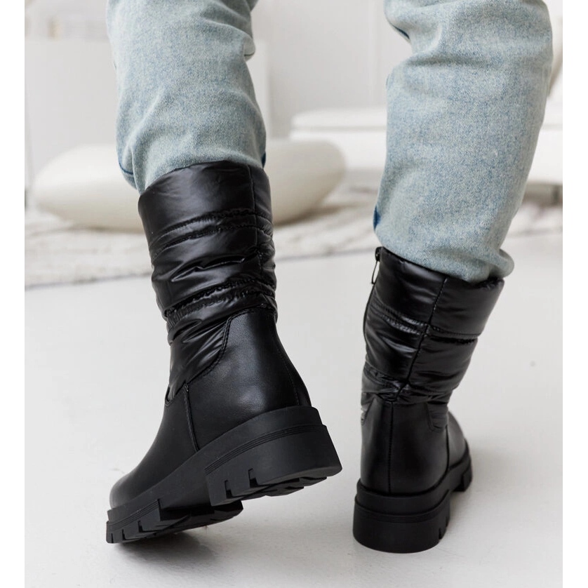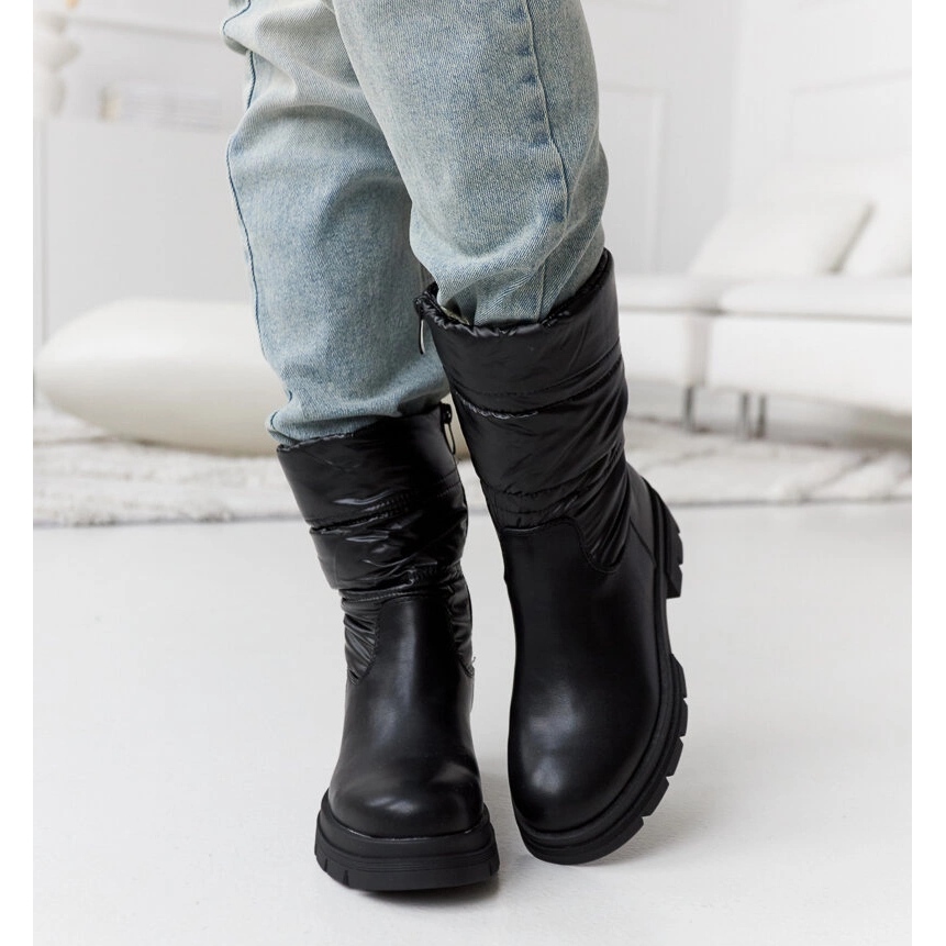 Produsul descris sunt cizmele negre de iarna de dama, care imbina designul elegant cu solutii practice care asigura confort in lunile mai reci. Aceste cizme au un model matlasat care le oferă un aspect unic și la modă. Sunt izolate, ceea ce le face perfecte pentru condițiile meteorologice de iarnă, ținându-ți picioarele calde.
