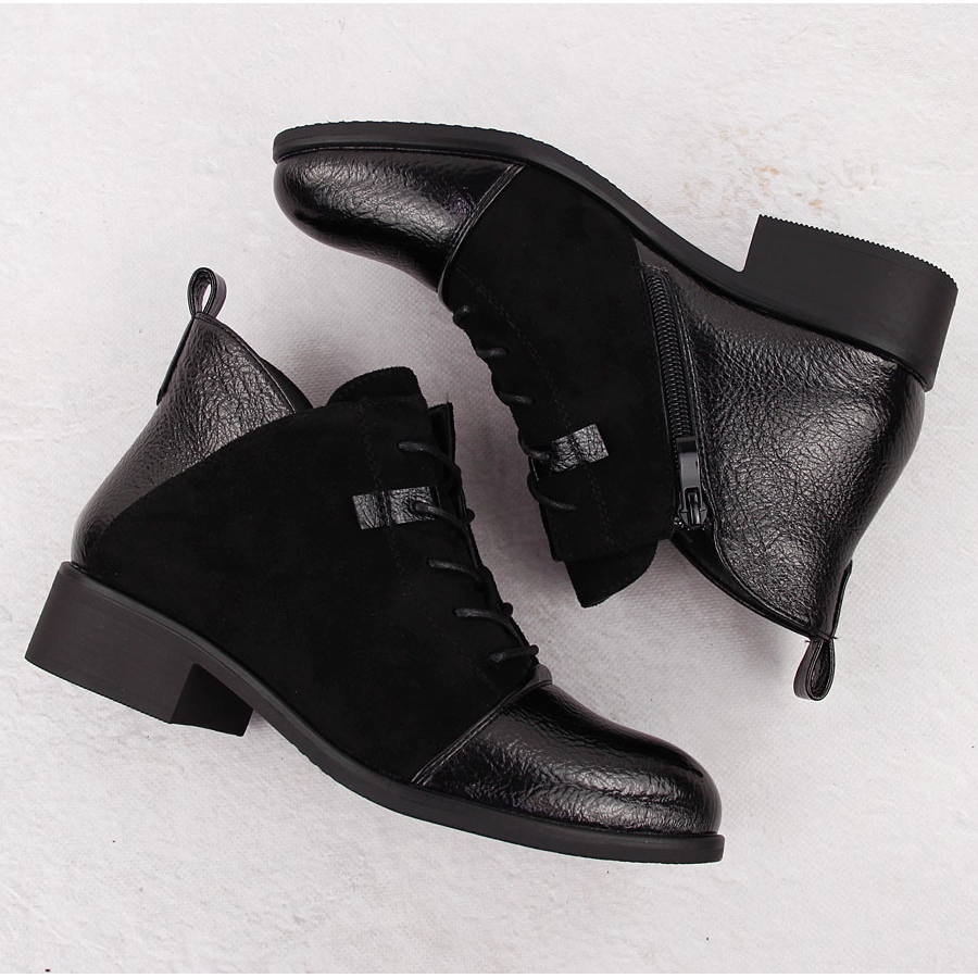 Detalii: M. DASZYŃSKI Botine negre izolate de piele intoarsa de dama M.Daszyński MR2458-7 negru