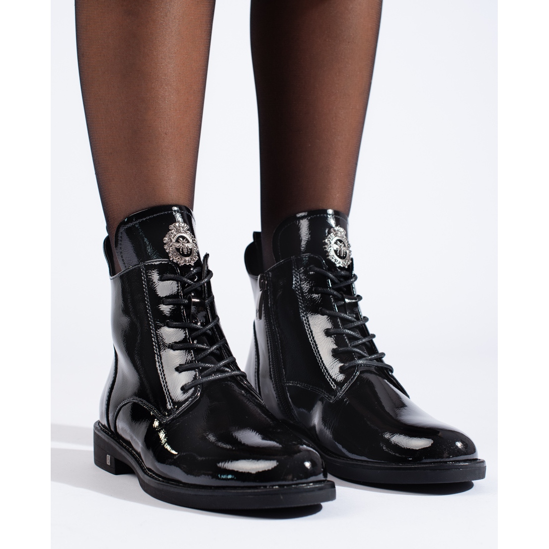 Detalii: W. Potocki Botine negre lacuite cu toc plat de la Potocki negru