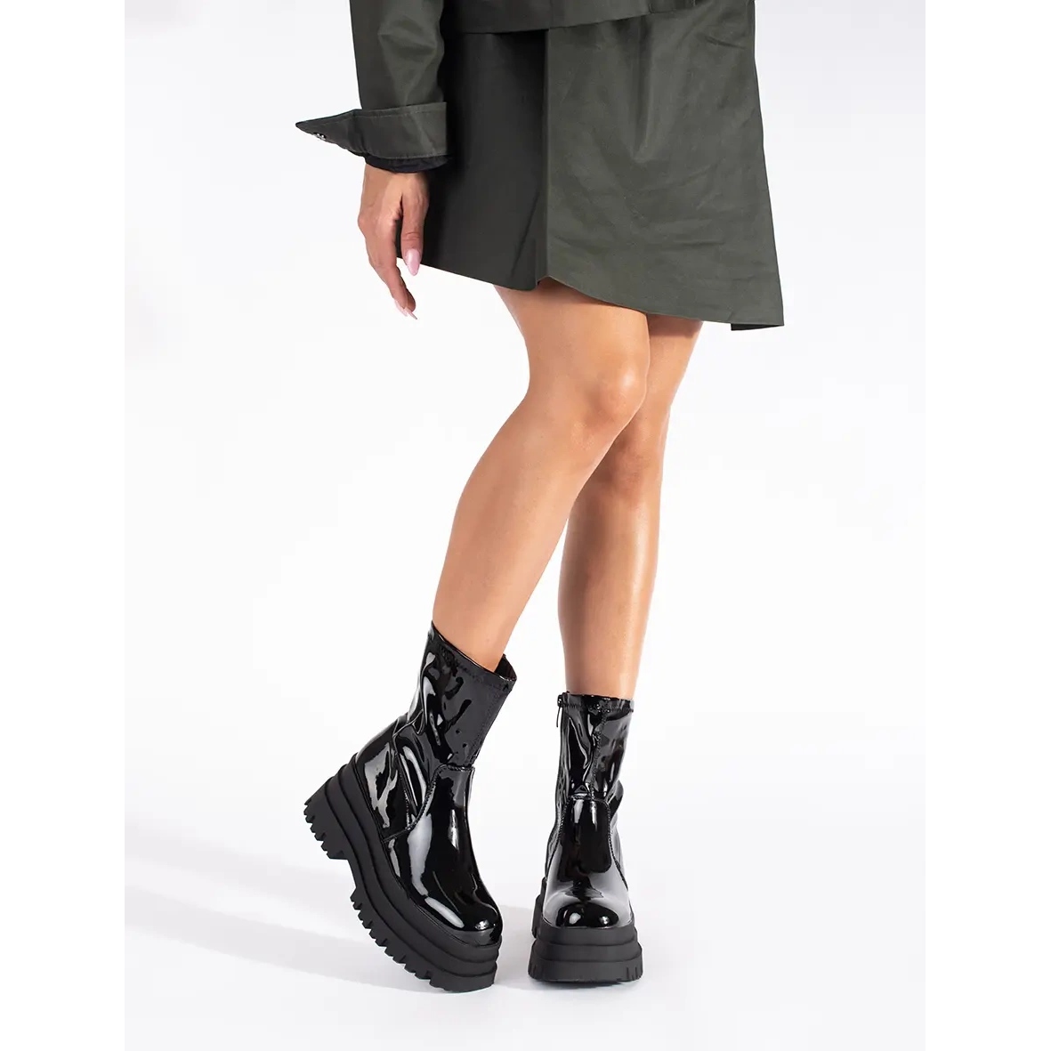 - Model: Botine din piele lacuita pe platforma