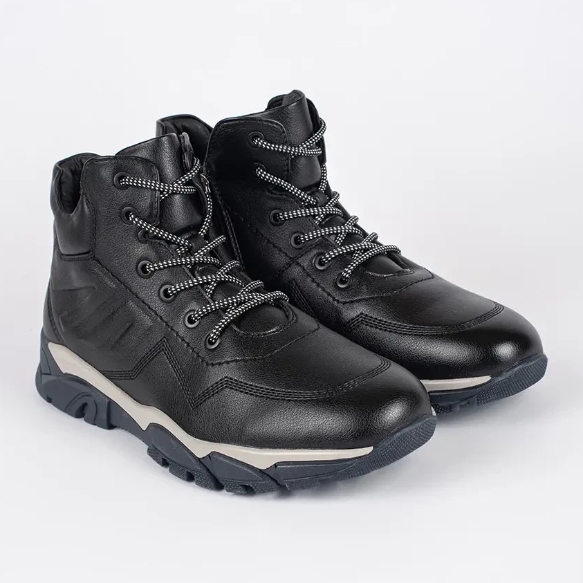 Detalii: Botine negre pentru bărbați, izolate cu șireturi negru