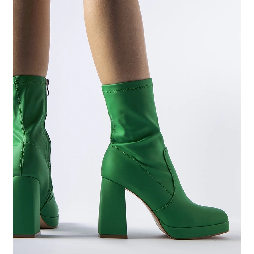 Botinele verzi mat cu toc sunt pantofi eleganti de dama, perfecti pentru diverse ocazii – de la iesiri de seara la intalniri cu prietenii. Înălțimea pantofilor este de 29,5 cm, iar tocul este de 10 cm, ceea ce îi face să arate feminin. Punerea și scoaterea acestor cizme este ușor și rapid, datorită fermoarului din lateral.