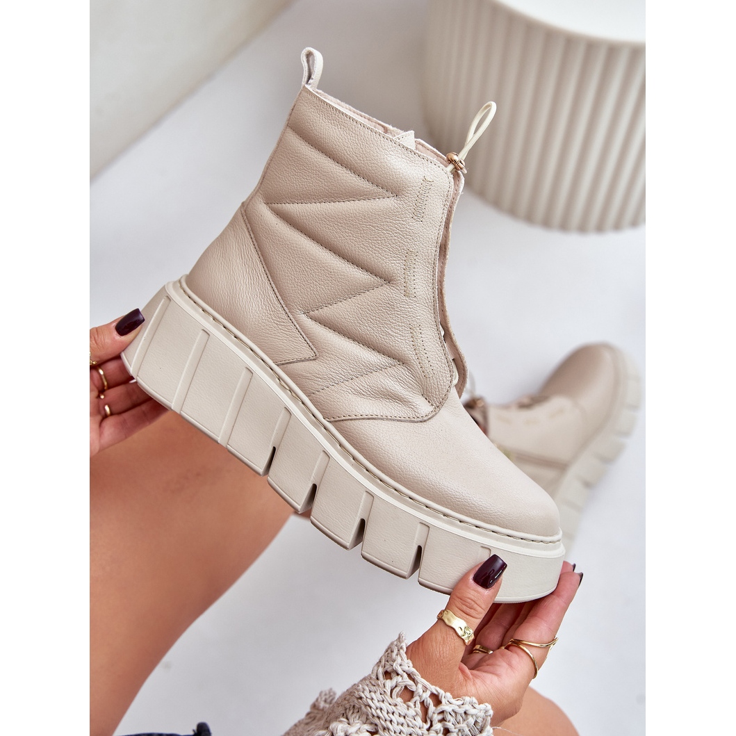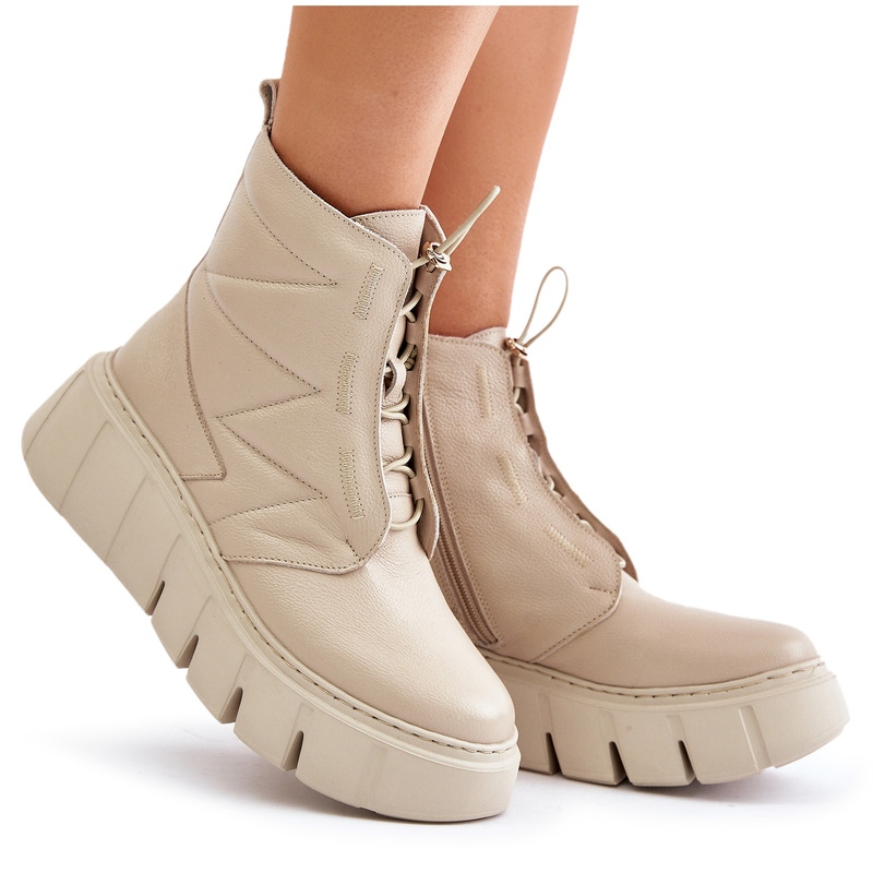 Detalii: Botine Zazoo 60472 Piele Pe Platformă Și Pane, Bej