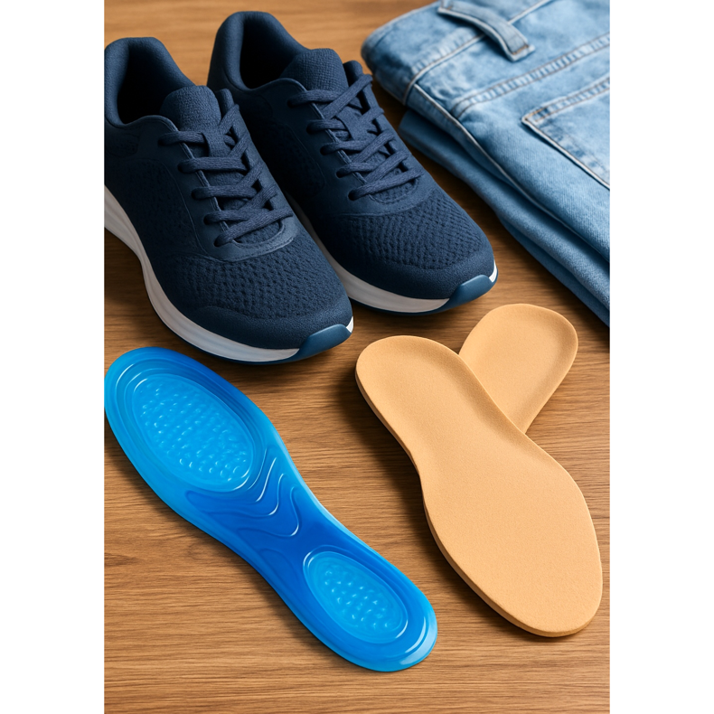 Inserțiile cu gel asigură amortizare maximă și confort atunci când stați în picioare sau mergeți pentru perioade lungi de timp. Fabricate din silicon sau gel poliuretanic, acestea absorb perfect șocurile și reduc presiunea asupra călcâielor, articulațiilor și coloanei vertebrale. Perfect pentru persoanele care lucrează într-o poziție în picioare (vânzători, bucătari, coafor), sportivi, persoane supraponderale și în timpul plimbărilor lungi sau al vizitelor turistice. Disponibil în versiune completă sau ca suport de gel pentru călcâi. Branțurile din spumă cu memorie se adaptează la anatomia individuală a piciorului, oferind confort personalizat. Combină moliciunea cu un suport bun. Excelent pentru încălțămintea sport casual și utilizarea de zi cu zi.