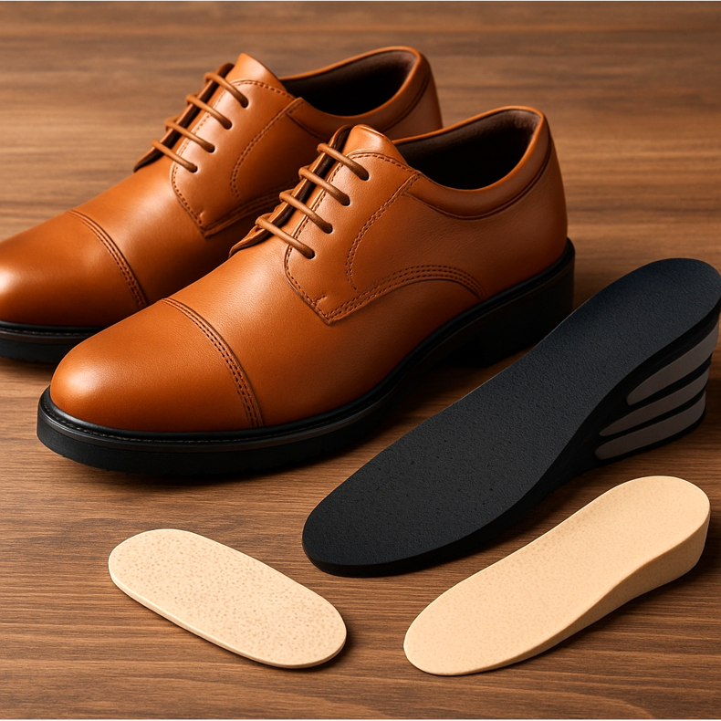Branțurile cu elevator adaugă 2 până la 7 cm înălțime discret, ascunse în interiorul pantofului. Fabricat din spumă ușoară multistrat sau silicon. Deosebit de popular în Asia, din ce în ce mai acceptat în Europa. Este important să alegeți modele ergonomice cu suport adecvat pentru arc pentru a evita disconfortul. Inserții corective pentru călcâi care corectează discrepanța lungimii picioarelor, disponibile în diferite înălțimi (de la 3 mm la câțiva cm). Acestea ajută la alinierea șoldurilor și la reducerea durerilor de spate. Acestea trebuie selectate de un ortoped sau kinetoterapeut, mai ales în cazul unor diferențe de lungime mai mari.