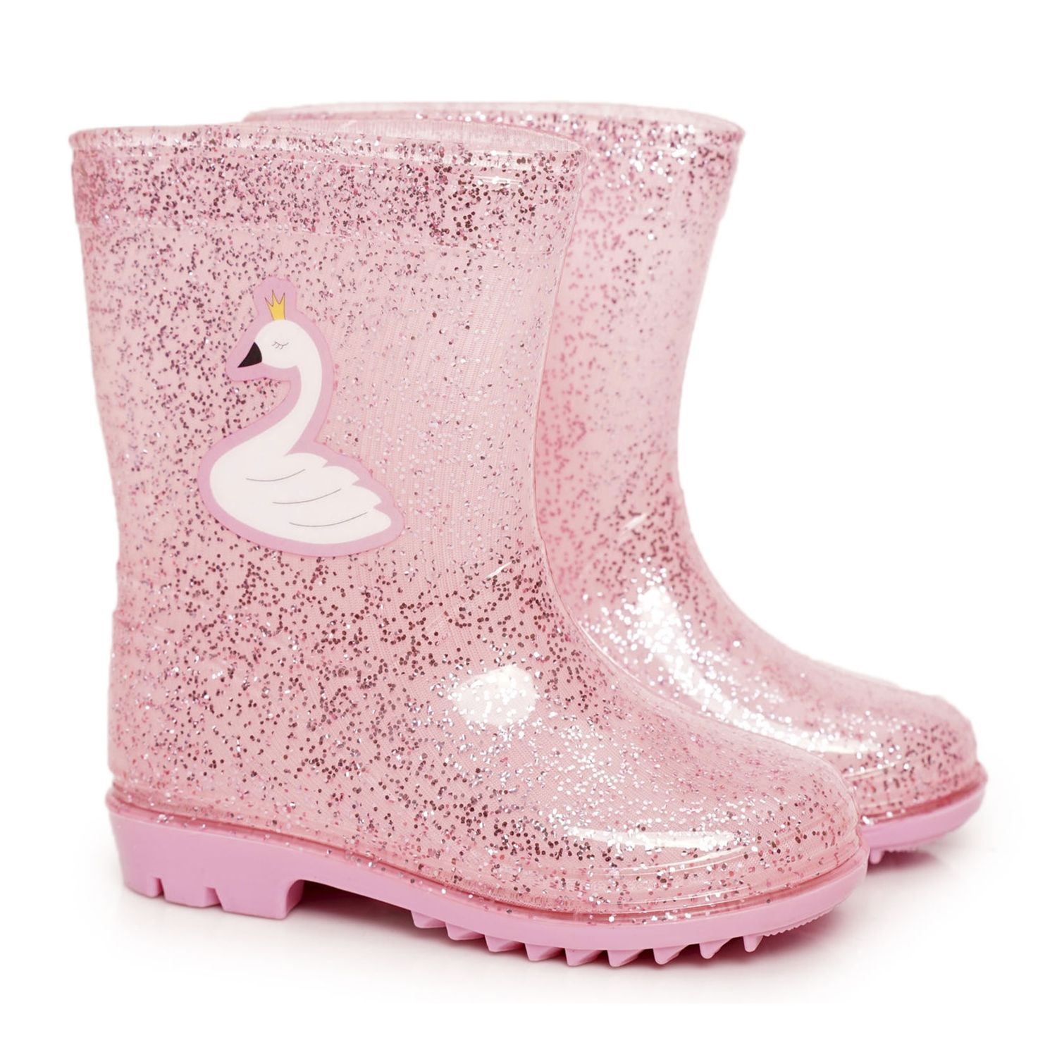 Te invitam sa descoperi fermecatoarele sandale pentru copii cu sclipici, cu o lebada in culorile roz si argintiu! Aceste cizme de ploaie unice sunt alegerea perfectă pentru zilele ploioase, oferind atât confort, cât și stil.