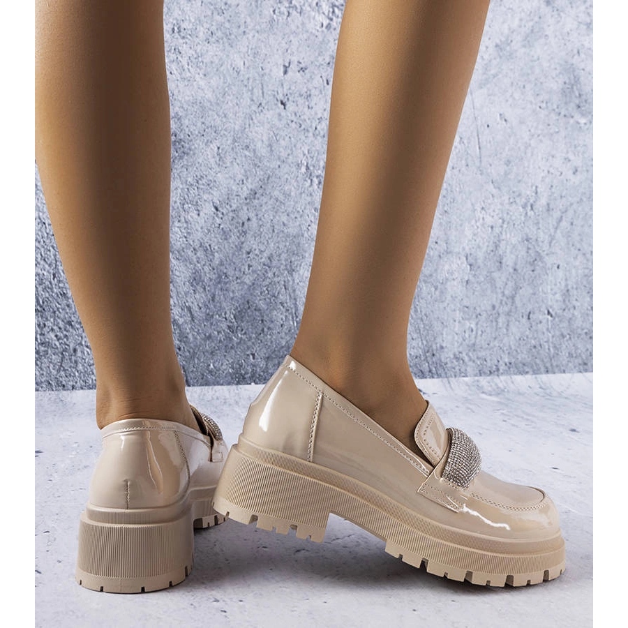 Detalii: Brogue lăcuită bej cu zirconii cubi de la Mouss