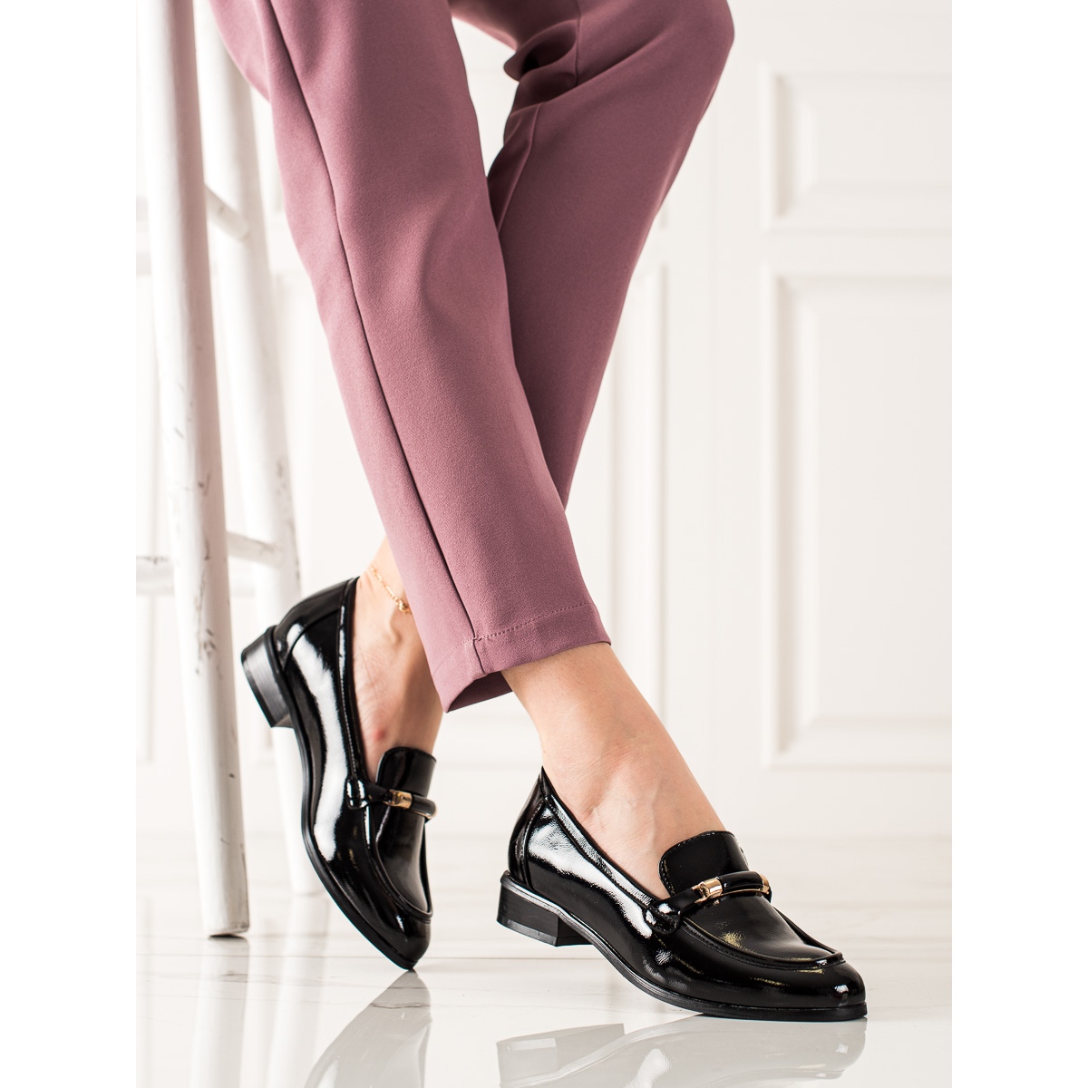 Realizați din imitație de piele de înaltă calitate, acești pantofi lacui impresionează prin aspectul lor elegant și construcția solidă. Nasul rotund și călcâiul moale încorporat asigură confortul la purtare, iar închizătorul slip-on îl face ușor de pus și scos. Datorită înălțimii tocului de 3 cm, acești mocasini nu sunt doar stilați, ci și stabili, ceea ce îi face perfecti pentru utilizarea de zi cu zi.