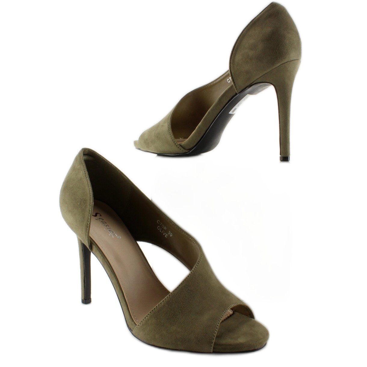 Nu așteptați! Investește în tocuri înalte asimetrice C70P Olive cu vârf deschis și ieși în evidență la orice petrecere!