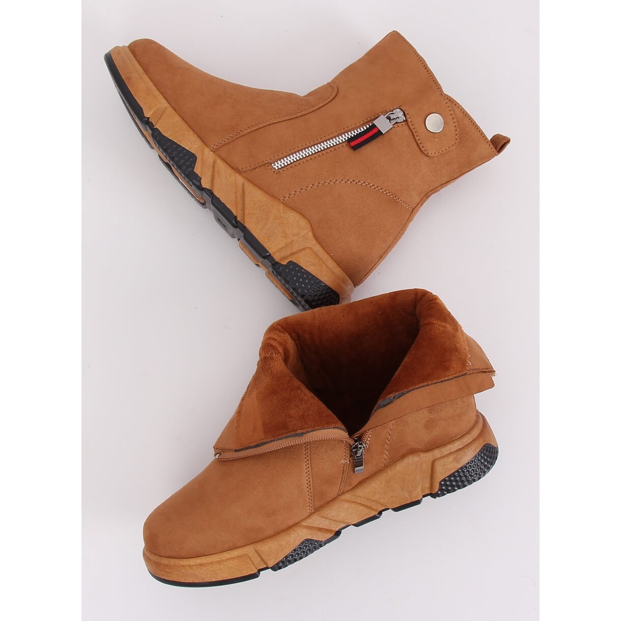 Cizme pentru femei elegante și confortabile și confortabile, perfecte zilnic. Modelul combină un personaj sportiv cu un aspect la modă - talpa ridicată adaugă o certitudine și se izolează de pe pământul rece, iar castelul de pe lateral face mai ușor de pus. Partea superioară din piele de căprioară ecologică, interiorul căptușit cu blană moale oferă căldură și confort.