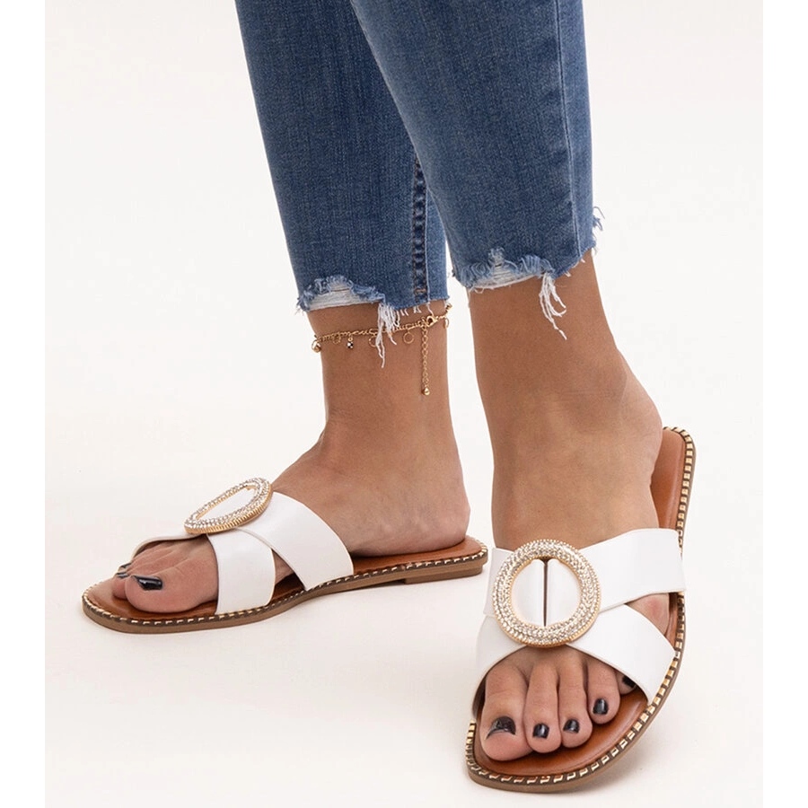 Descoperiți eleganța și confortul, care sunt oferite de pisici decorate cu o cataramă în strasurile Salimb într -o culoare albă frumoasă. Perfect pentru zilele de vară, aceste pisici de alunecare combină tendințele moderne de design și modă. Fabricate din piele organică de înaltă calitate, nu sunt doar ecologice, ci și extrem de durabile și confortabile de purtat.