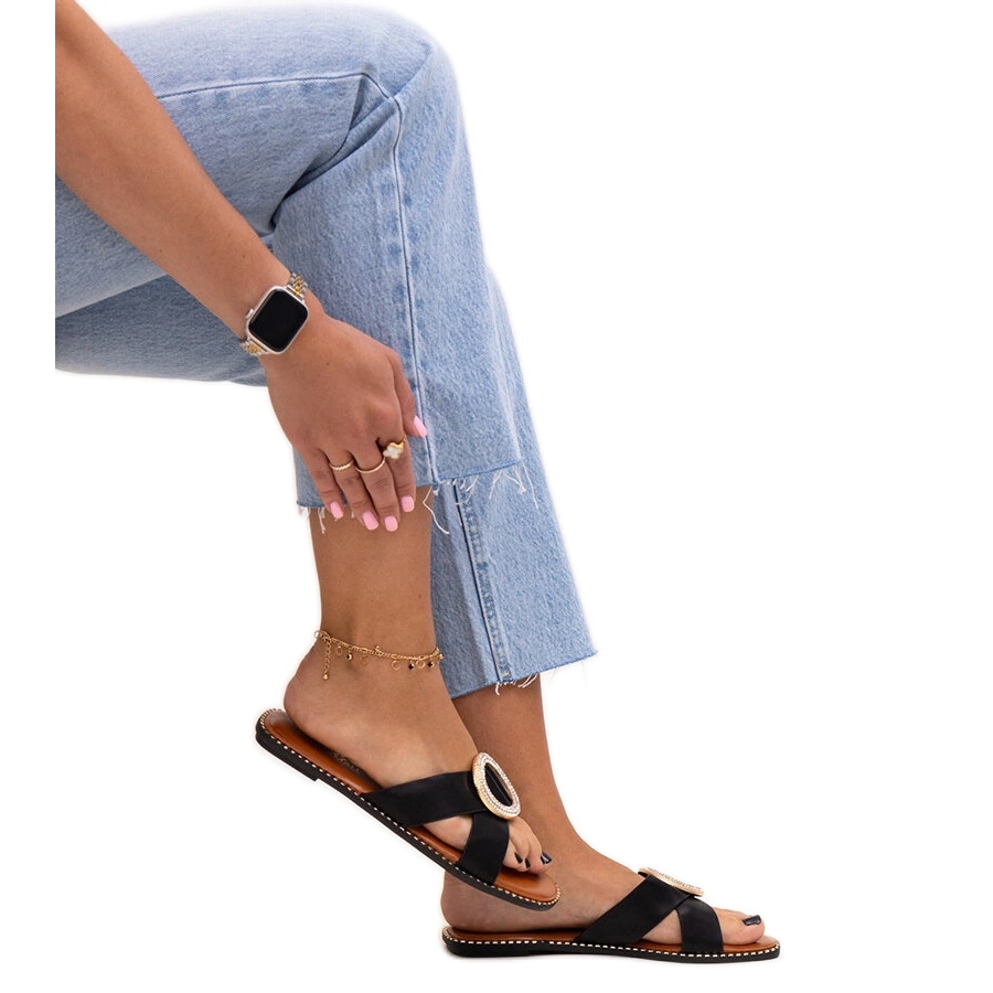 Descoperiți flop -urile unice decorate cu o cataramă în strasurile Salimb într -o culoare neagră clasică, care este o propunere excelentă pentru zilele calde de vară. Aceste fluxuri elegante, introduse, combinate confortul și eleganța, datorită cărora vor fi complementul perfect pentru stilizarea dvs. de vară.