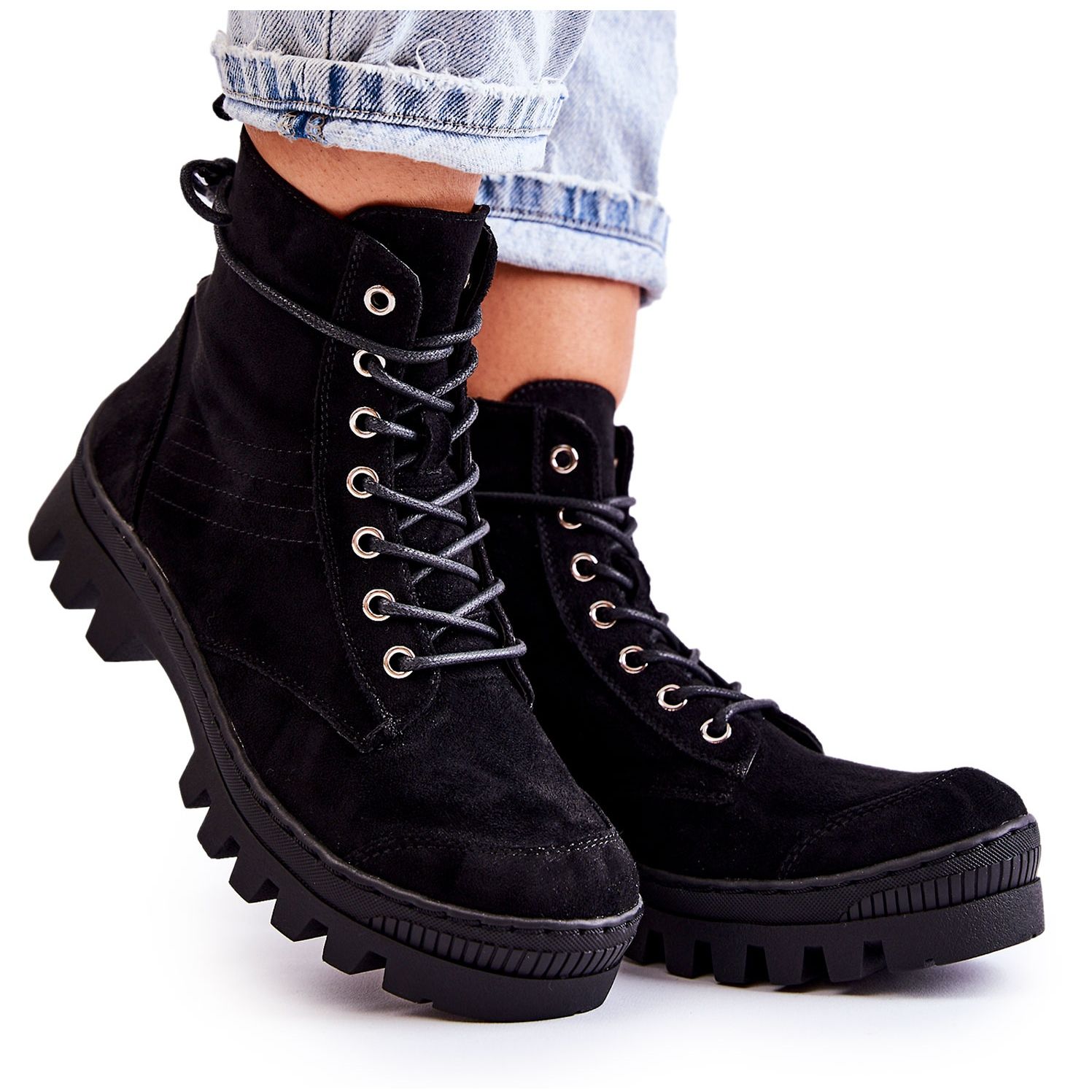 Cizme elegante încorporate pe o talpă masivă, întinsă - o combinație perfectă de caracter urban și confort. Un superior eco moale, cu o cusătură decorativă și un călcâi rigidizat oferă pantofilor un aspect solid, iar armarea de cauciuc din față protejează nasul de abraziuni. Fițerul de fixare a fermoarului din interior și o dantelă suplimentară facilitează potrivirea. Culorile neutre, negre fac ca pantofii să se potrivească cu multe stiluri.