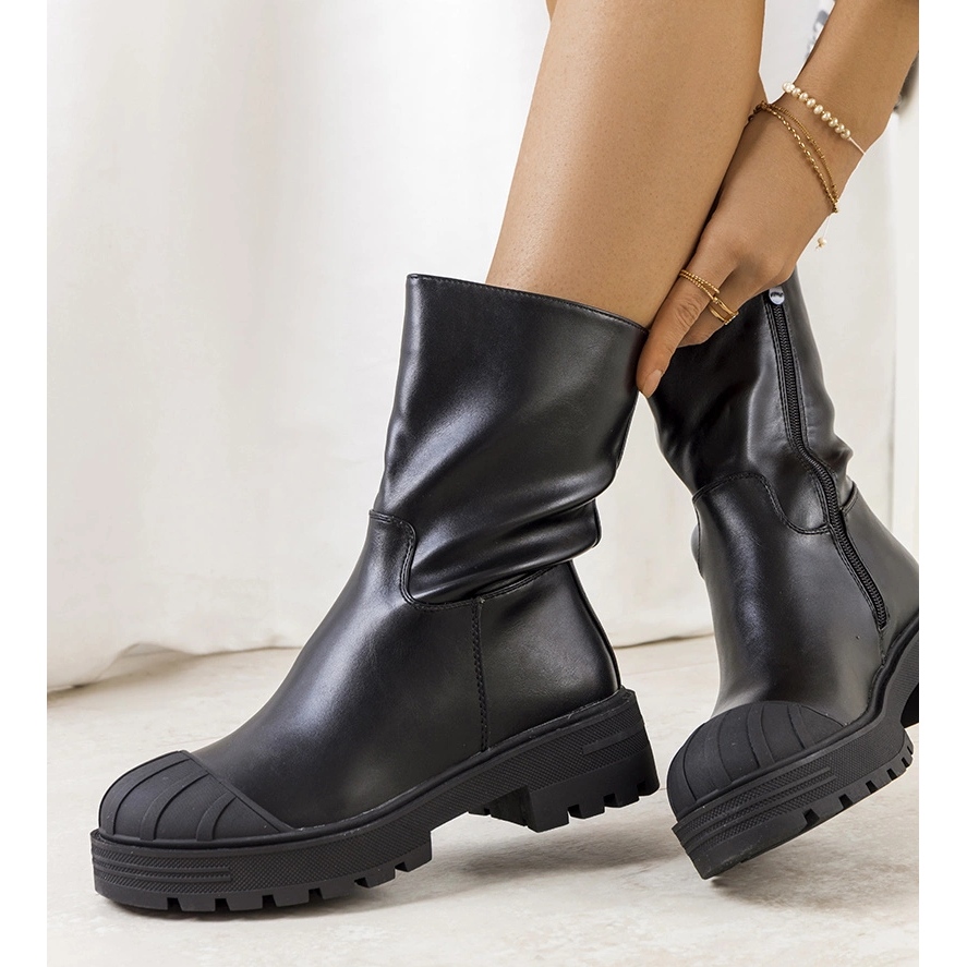 Capcanii eleganți Sville negri sunt un complement perfect pentru stilizările de toamnă și de iarnă. Le veți combina atât cu haina, cât și cu sacoul din piele - vor oferi aspectului un personaj la modă, feisty. Partea superioară din piele ecologică garantează o calitate bună și confort de a purta, iar nasul de cauciuc cu embosare distinge modelul de stilurile clasice.