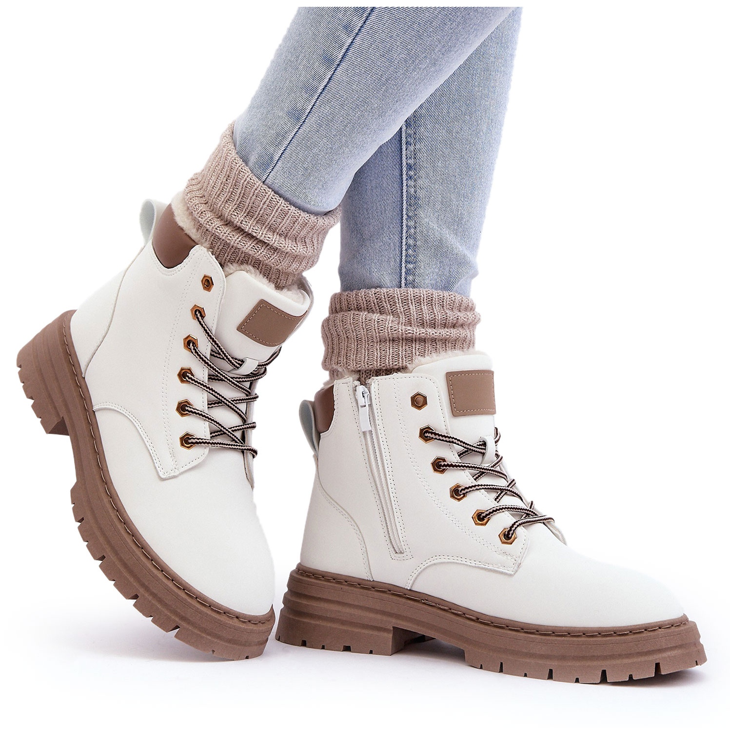 Așezate pe o platformă confortabilă și un toc plat, oferă stabilitate și confort pe tot parcursul zilei. Datorita fermoarului lateral, incaltarea si scoaterea pantofilor devine rapida si usoara. Șireturile suplimentare permit o potrivire perfectă pe picior, ceea ce crește semnificativ confortul la purtare. La interior, cizmele sunt izolate cu blană groasă, ceea ce le face o alegere perfectă pentru zilele mai reci.