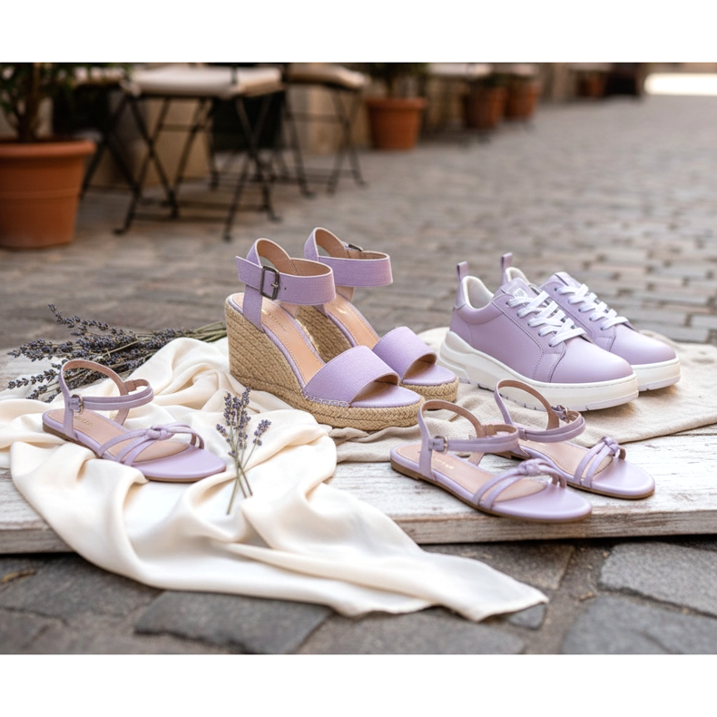 Lavanda și liliacul delicat sunt culori care, după o scurtă pauză, revin pe podiumuri cu energie nouă. In sezonul primavara/vara 2026, violetul in incaltaminte apare in cele mai delicate variante pudrate - este o culoare romantica, feminina si in acelasi timp surprinzator de universala.