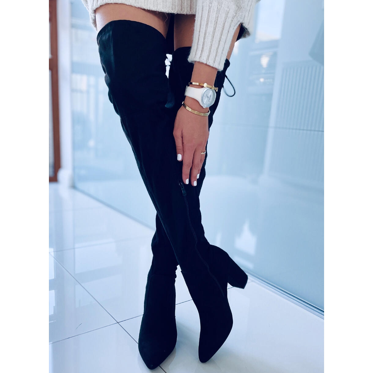Cizmele Cher Black sunt o alegere perfecta pentru fiecare femeie care cauta pantofi cu croi lung care sa adauge clasa oricarei tinute fara a sacrifica confortul. Foarte funcționale și stilate, aceste cizme peste genunchi sunt un element esențial în colecția de pantofi pentru femei la modă.