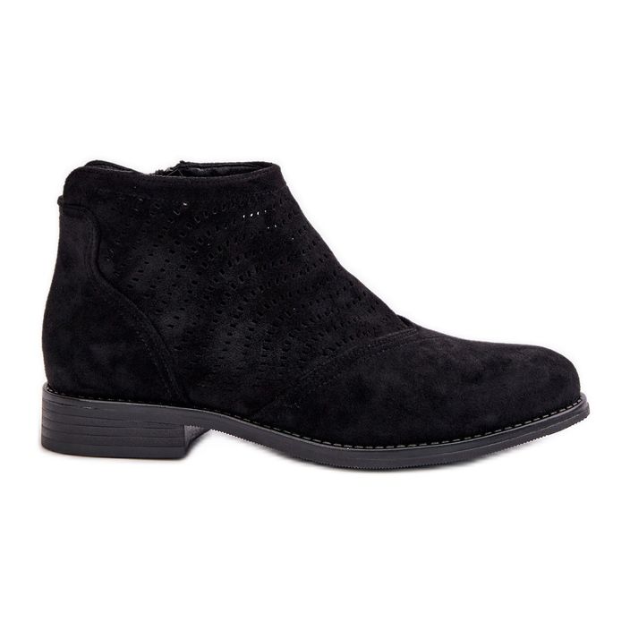 Detalii: Cizme ajurate de damă cu toc plat negru S.Barski HY42-076