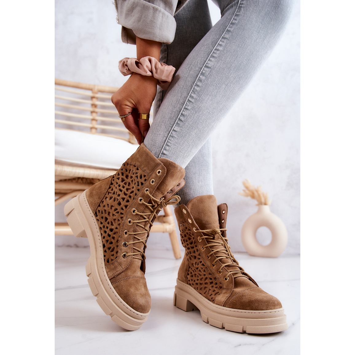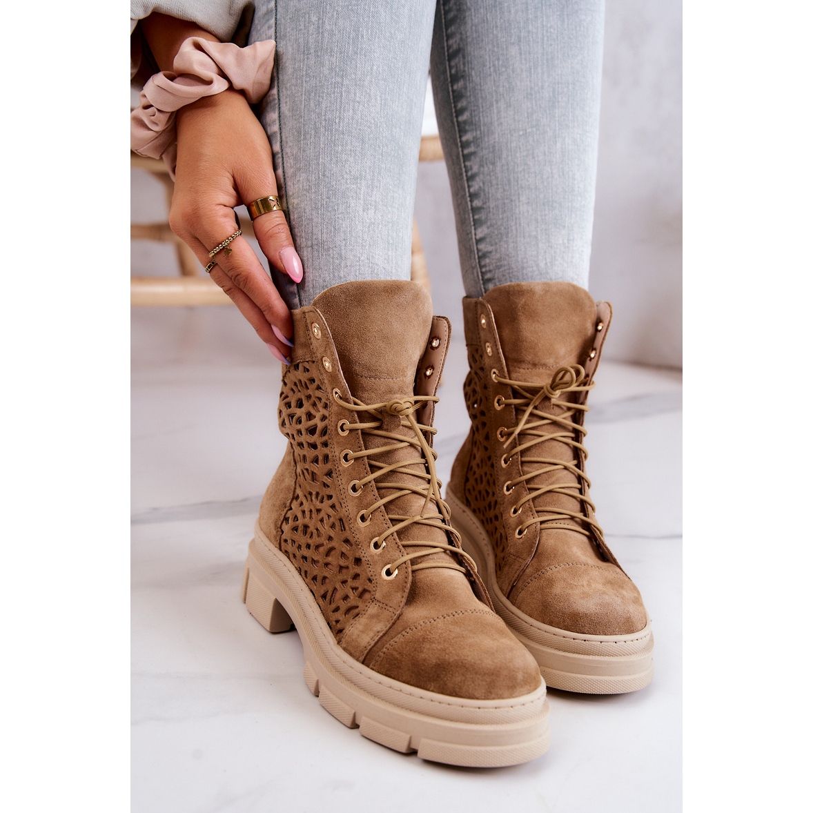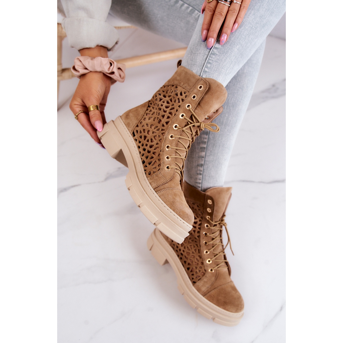 Detalii: FILIPCZYK Cizme ajurate din piele intoarsa Camel Aileen maro