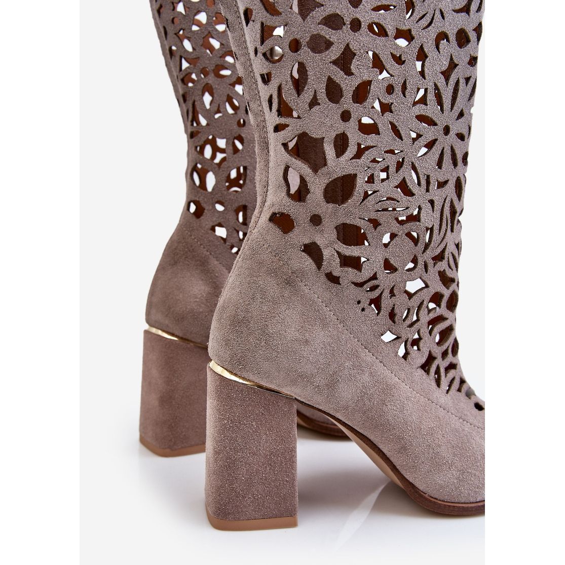 Detalii: Lewski Shoes Cizme ajurate din piele intoarsa Pantofi Leski 3234 Cappuccino multicolor
