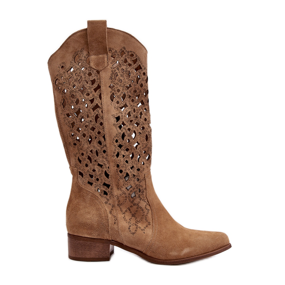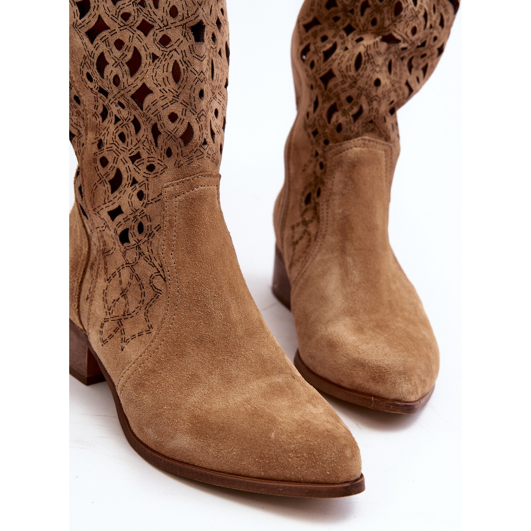Zazoo Cizme ajurate pentru femei Zazoo 3403, cu toc mic, bej