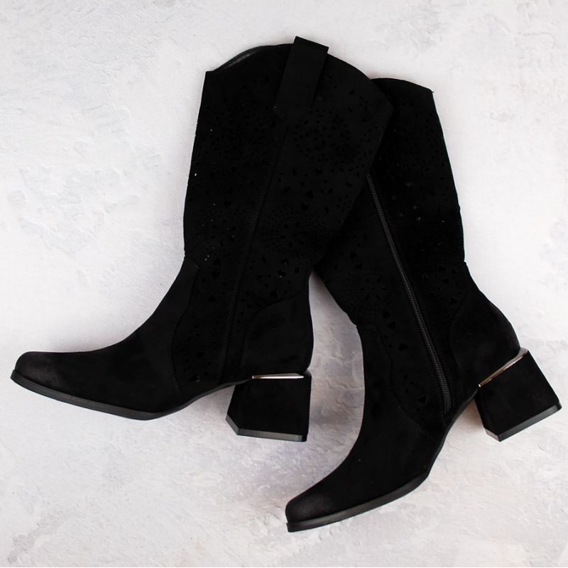 Detalii: Cizme ajurate Potocki W WOL210A din piele intoarsa, negre negru